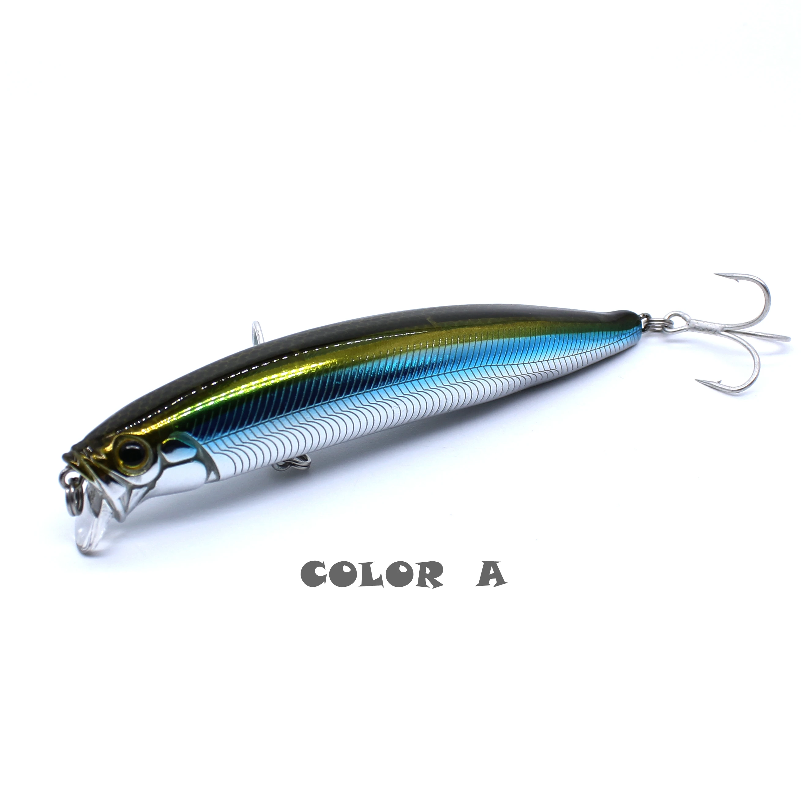 La forma aerodinámica y el equilibrio de peso permiten lanzamientos largos y tanto de rápida como de parada y recuperación. Es muy adecuado para atún, pez azul, barracuda y lubina.