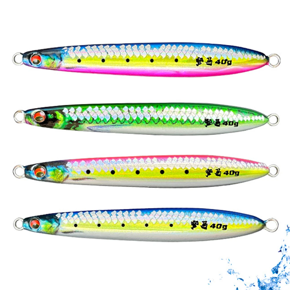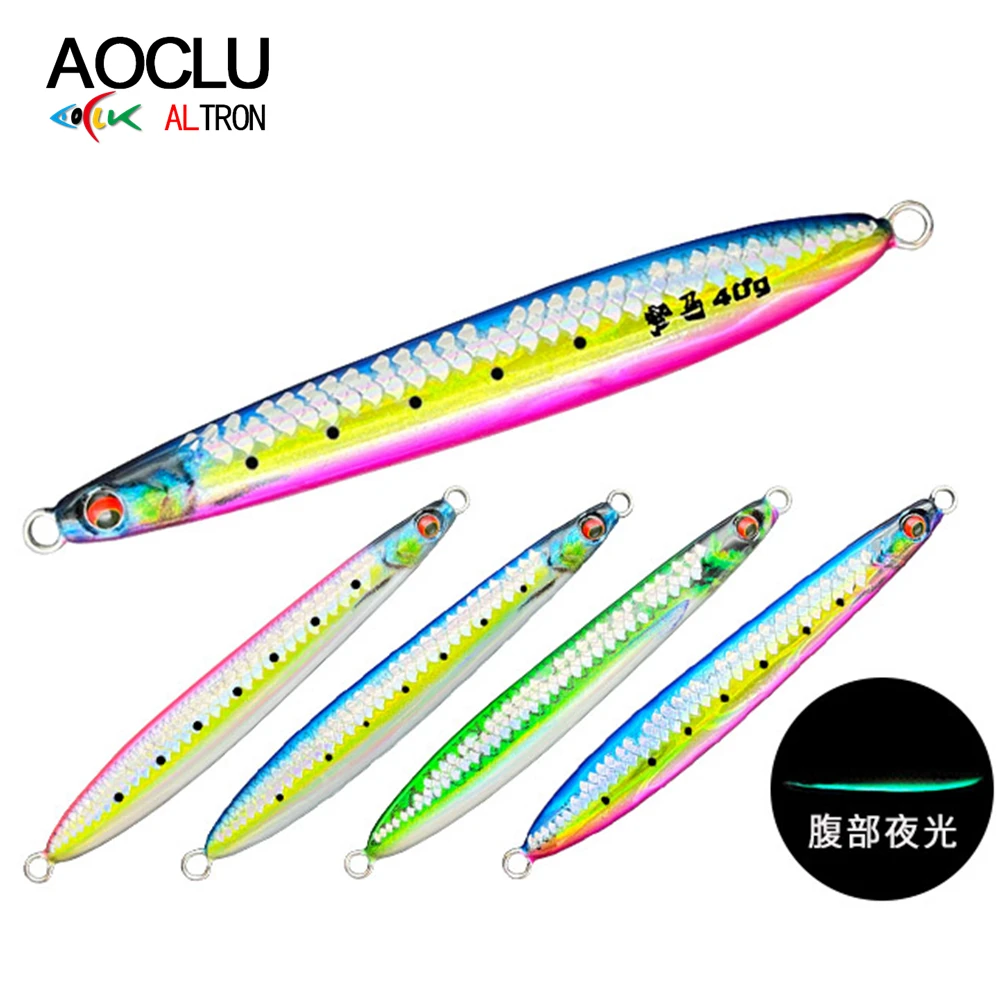AOCLU señuelo de hundimiento lento Jigging, cebo de pesca de fundición brillante, aparejos de plantilla de Metal, peces de mar de agua salada, sin ganchos, 40g, 60g, 80g