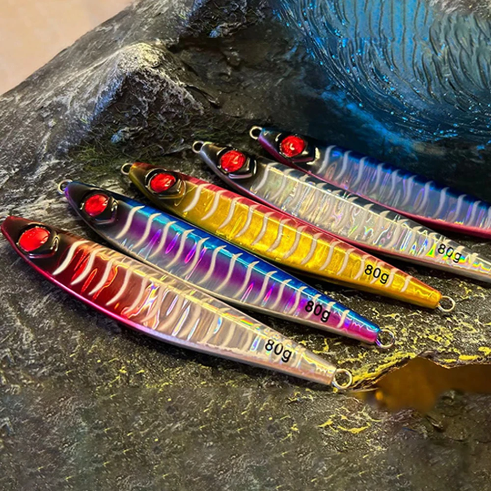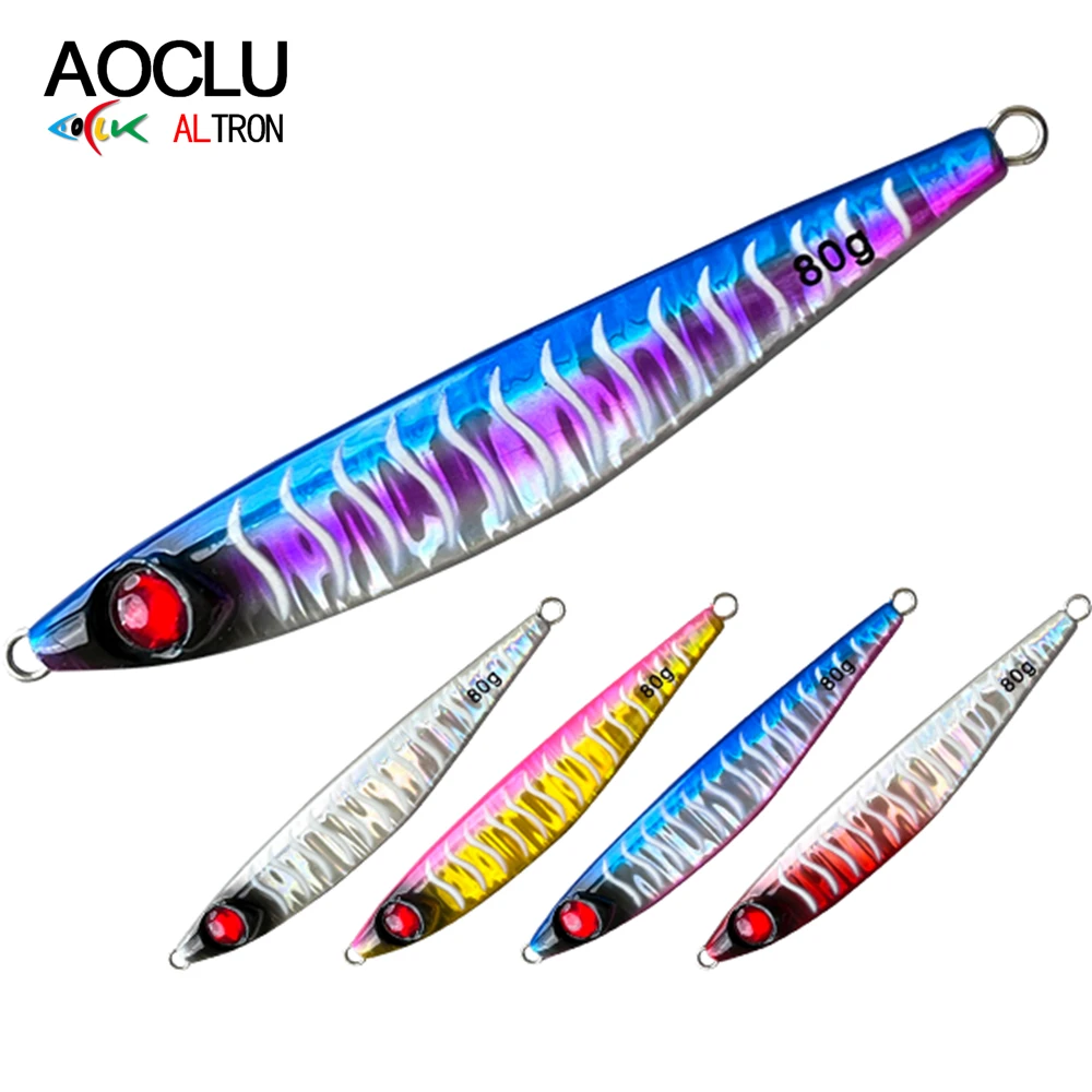 AOCLU señuelo de Jigging lento, 40g, 60g, 80g, plantilla de fundición brillante, cebos de Pesca, Señuelos de plantilla de Metal, aparejos de pesca de agua salada, peces de mar