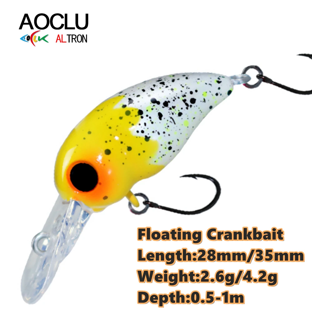 AOCLU-señuelo de pesca flotante Minnow, cebo duro de 28mm, 2,6g, 35mm, 4,2g, manivela de buzo profundo, profundidad de 0,5-1m, anzuelo de fundición larga, aparejos de calidad