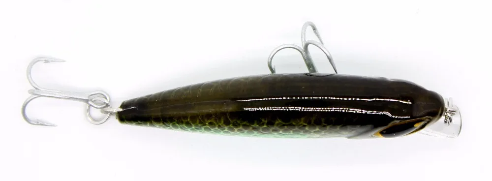 Este es un pequeño pececillo que se hunde y proporciona un lanzamiento de largo alcance. Su característica más innovadora es el autoenrollado que produce durante el hundimiento. En combinación con el sonajero interno resonante, crea una estela en la superficie y una estela de destrucción a graves poco profundos. Increíble en trucha, black bass y Little Jacks.