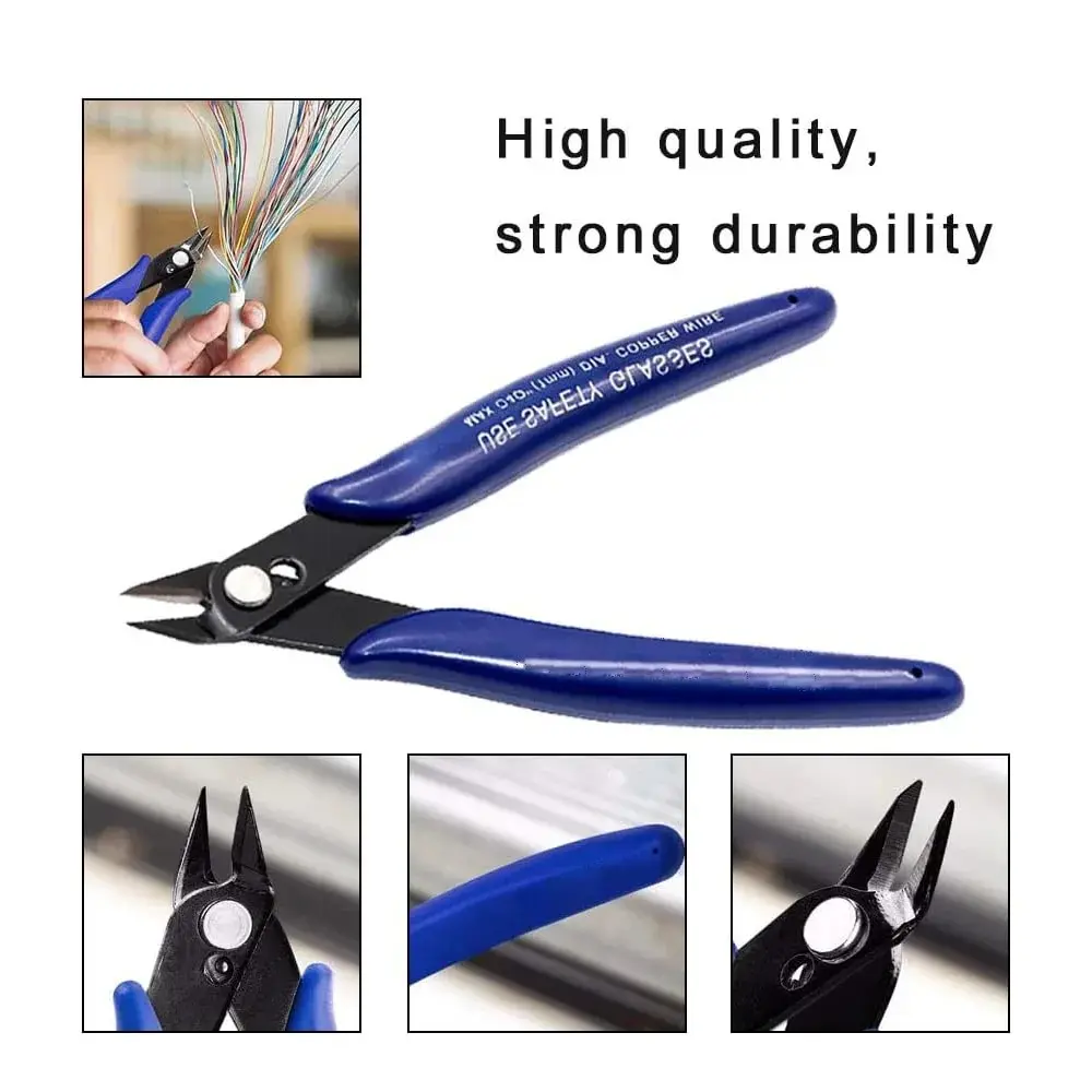 • Alicates de Corte Lateral diagonal electrónicos de bricolaje :Con la capacidad de cortar en diagonal y hacia los lados, Estos alicates son perfectos para cortar alambres y cables con precisión.