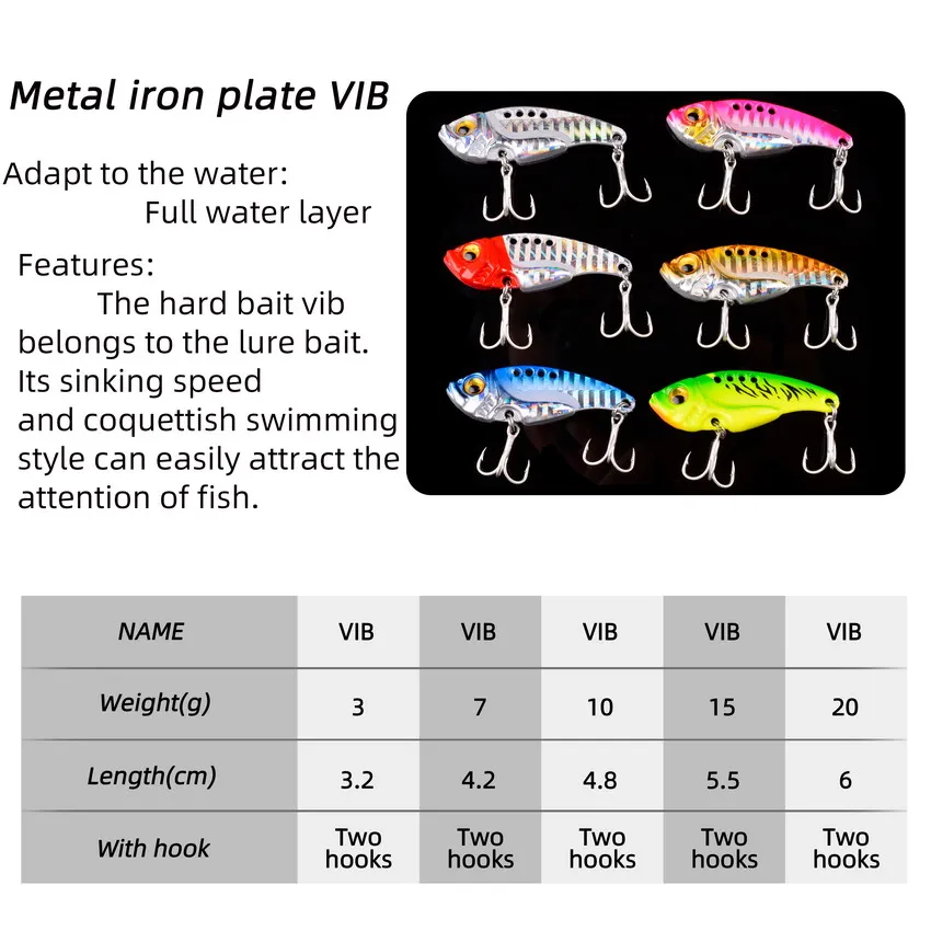 5 unids/caja de Metal VIB 3/7/10/15/20g señuelo de pesca cuchara vibratoria cebos duros Crankbait Wobbler Swimbait cigarra VIB aparejos