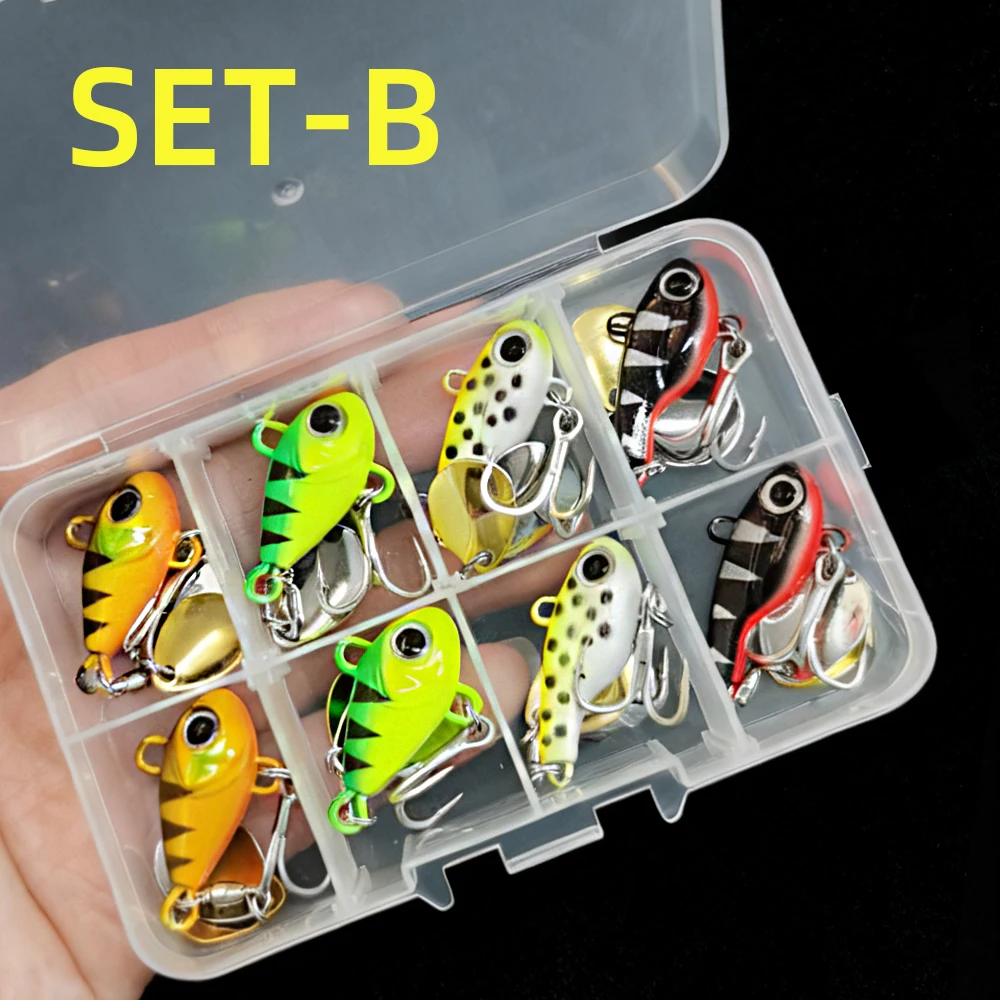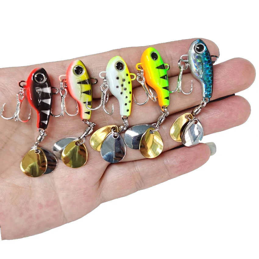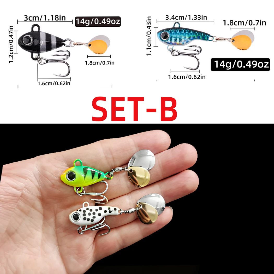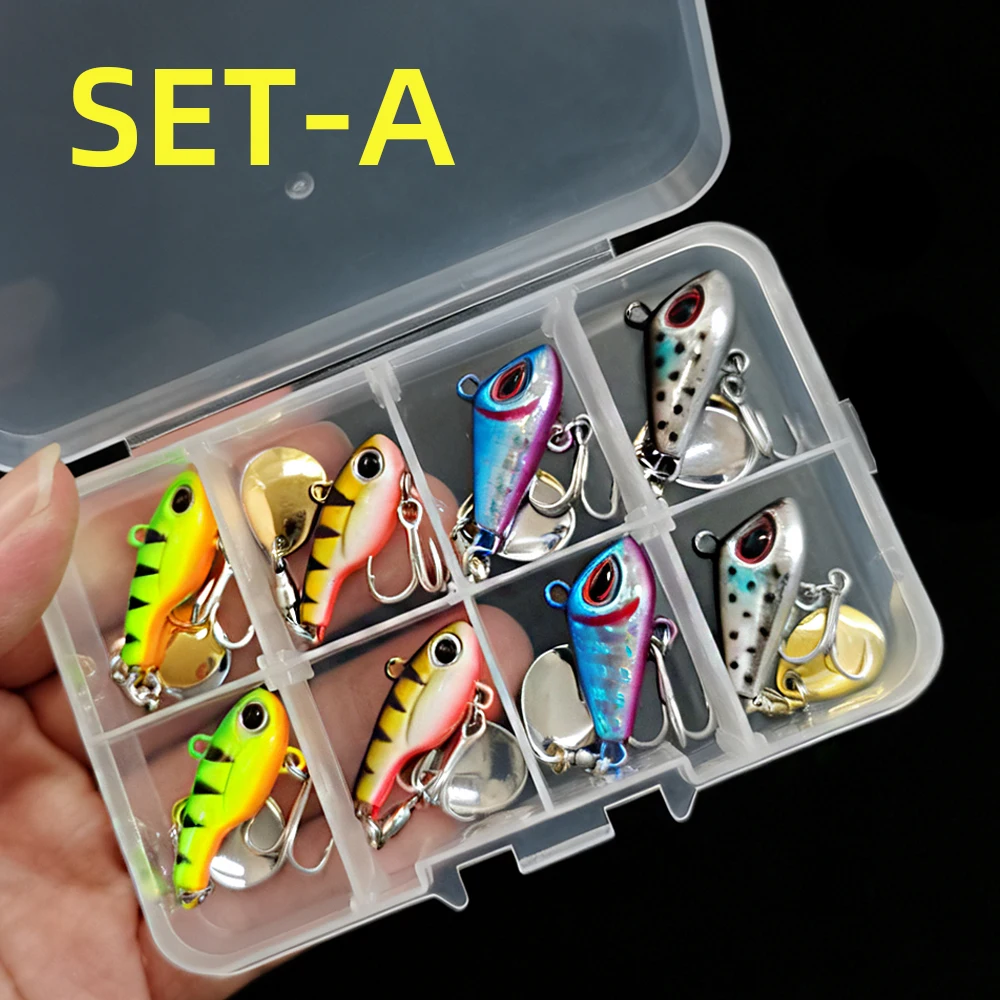 Aorace 8 Uds Metal VIB con doble lentejuelas juego de Señuelos de Pesca 10g-14g aparejos de pesca Pin Crankbait vibración Spinner cebo que se hunde