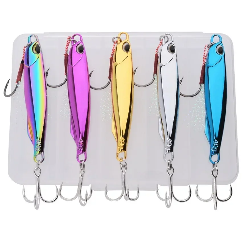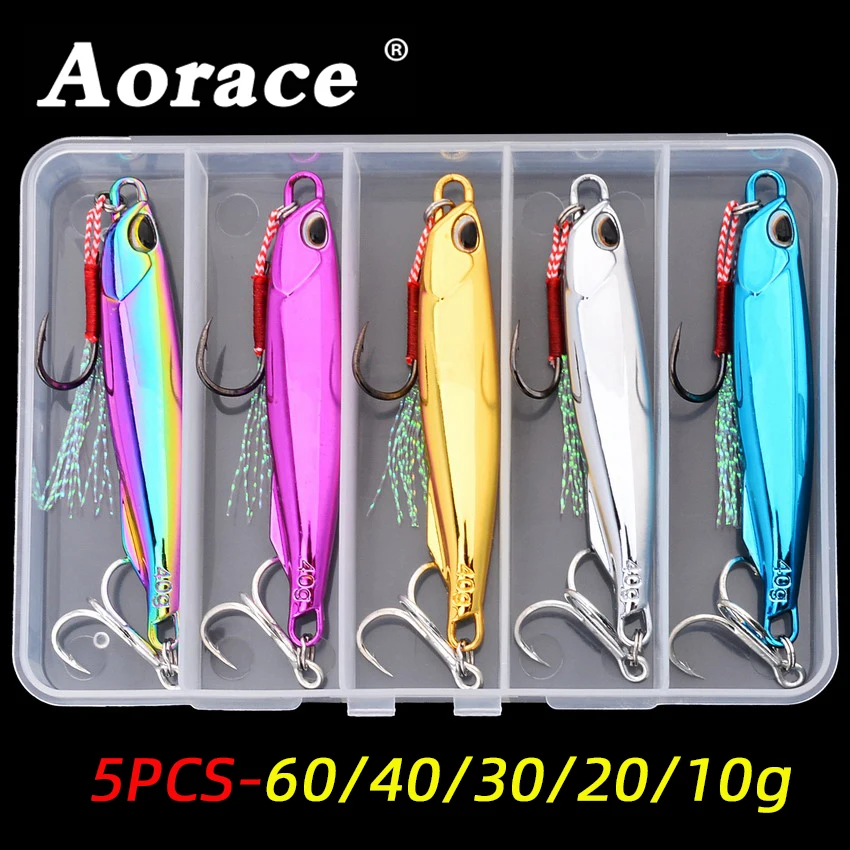 Aorace-cuchara de plantilla fundida de Metal, 5 uds., 20/40/60g, fundición a tierra, Jigging, pez, lubina, señuelo de pesca, cebo Artificial, caja de aparejos