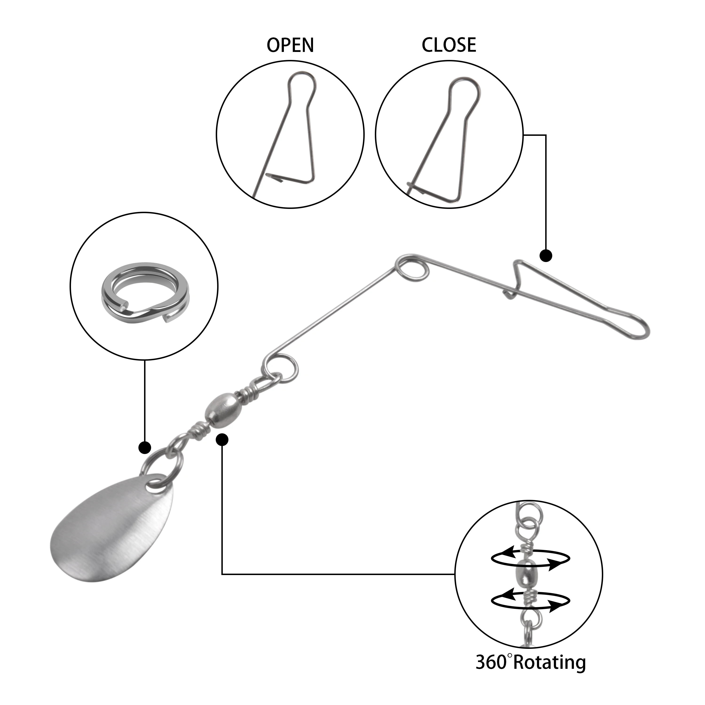 Aparejo de 10 cucharas lisas de piezas, eje de alambre con hoja de Colorado, plantilla giratoria, señuelo de repuesto