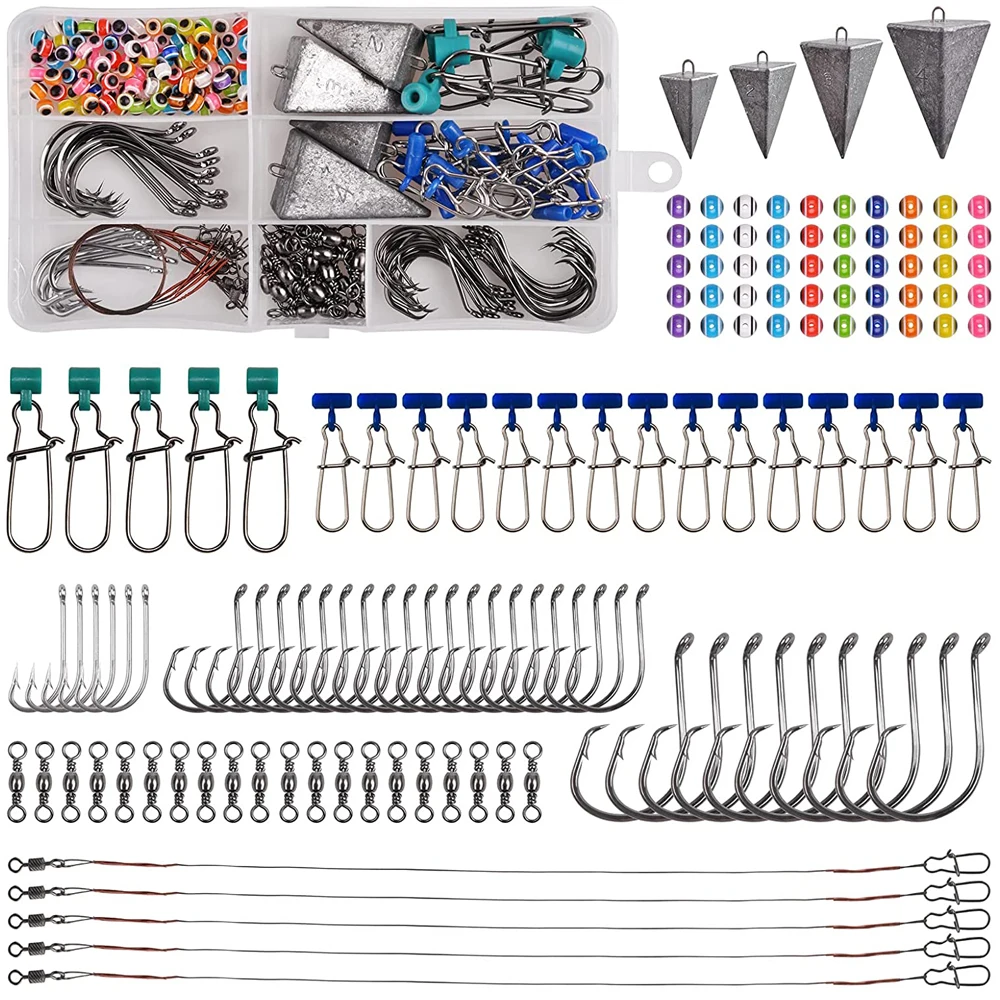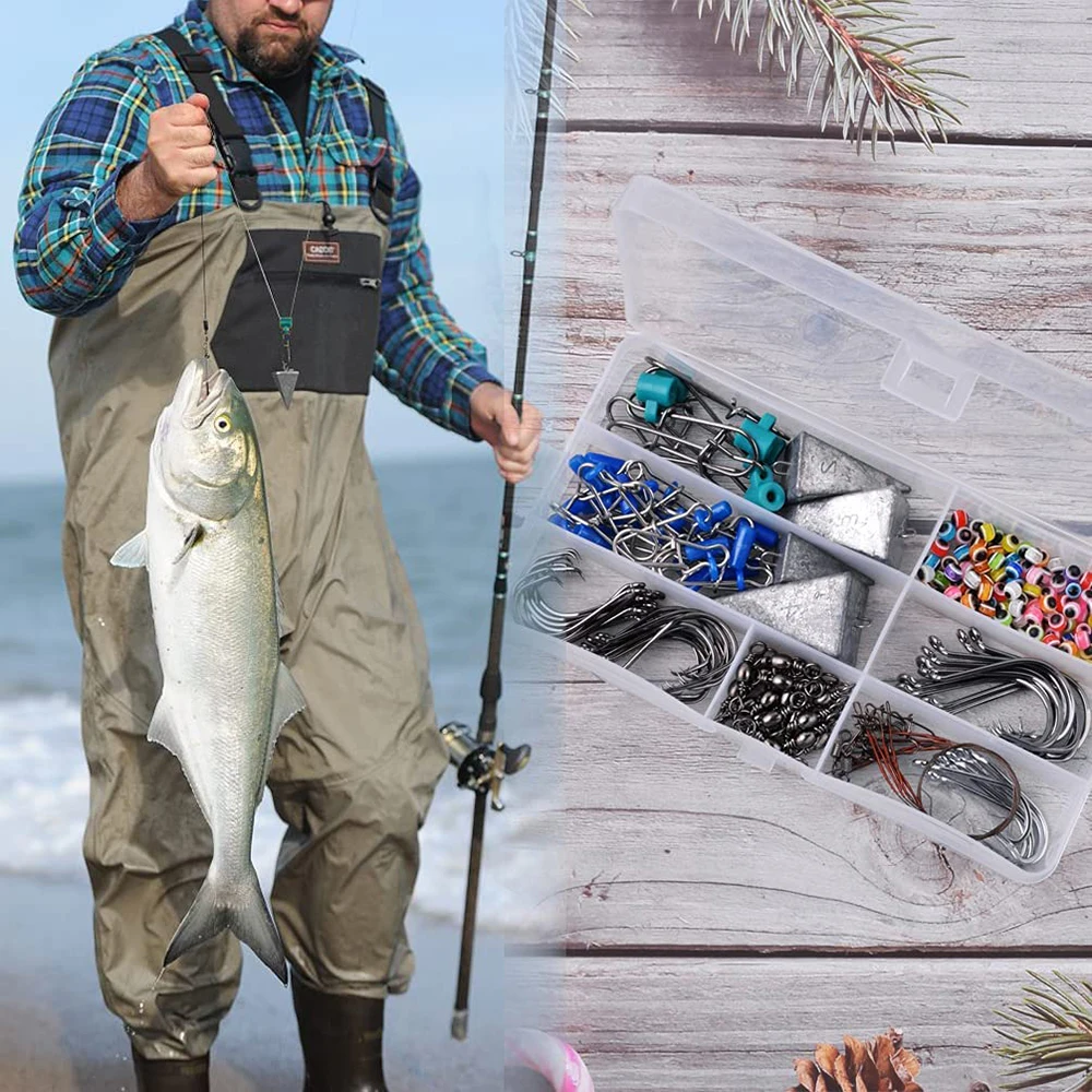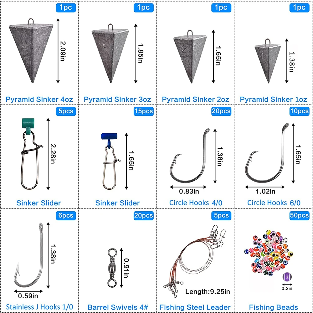135 piezas, equipo buscador de peces de Surf, equipo de aparejos de cebo de pesca de agua salada con deslizador de Sinker, pirámide, pesas, anzuelos de pulpo, herramienta