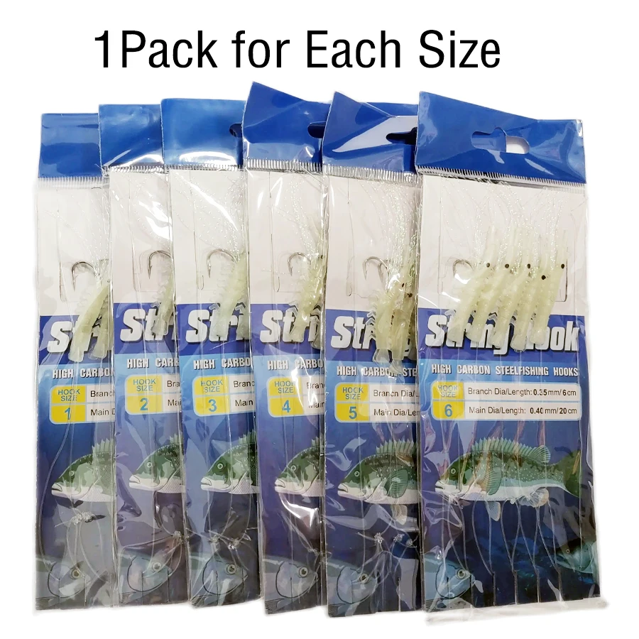 6 paquetes de camarones, 5 anzuelos, anzuelo de cuerda de agua salada brillante, señuelo de pesca, aparejo de cebo Tackle1 #2 #3 #4 #5 #6 #