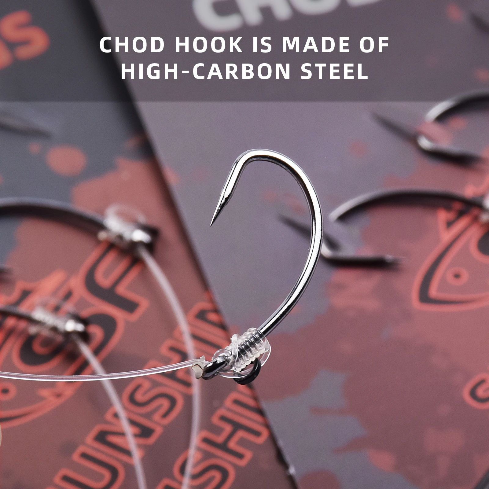 1. Alta calidad: el gancho Chod está hecho de acero de alto carbono, súper afilado y duradero. Viene con anillo giratorio de tamaño 8, rotación flexible.
