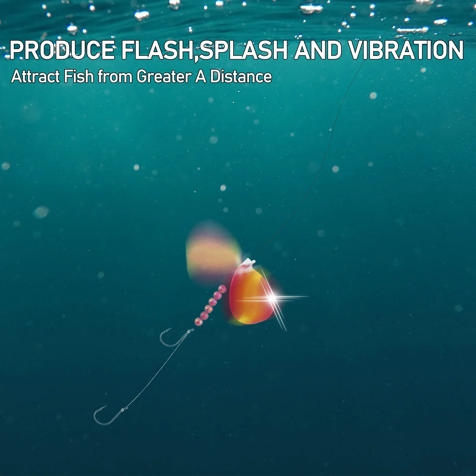 Estos aparejos de lucioperca se atan a mano con cuchillas y cuentas de colores brillantes en patrones combinados, para maximizar su atractivo y productividad. Las plataformas pueden crear continuamente destellos, salpicaduras y vibraciones en el agua, pareciendo un pez pequeño nadando, lo que ayudará a los peces a localizar su señuelo en cualquier condición de agua y atraer a los peces grandes para que muerdan el anzuelo.