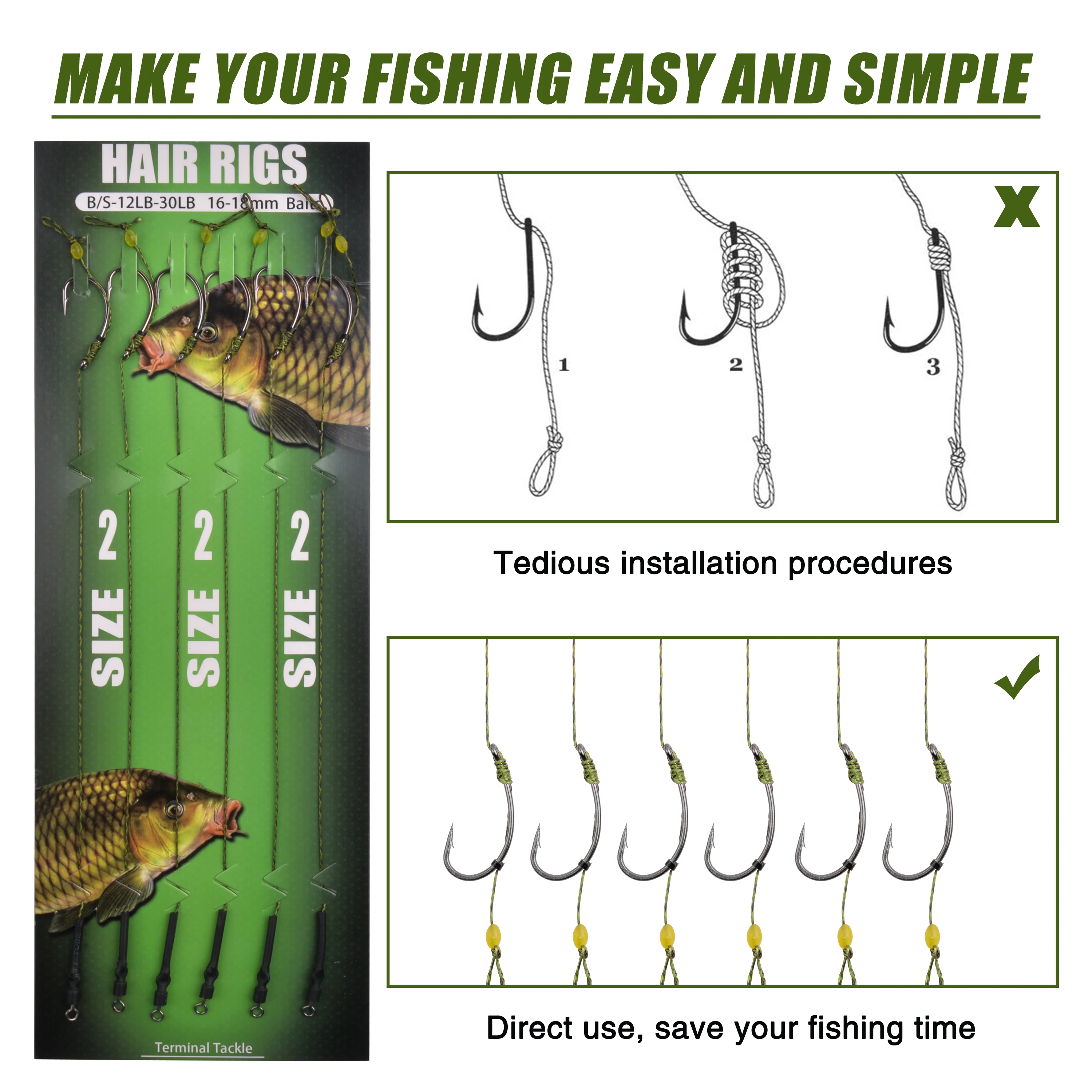Aparejo líder de carpa, juego de ganchos de pesca de carpa listos para usar.