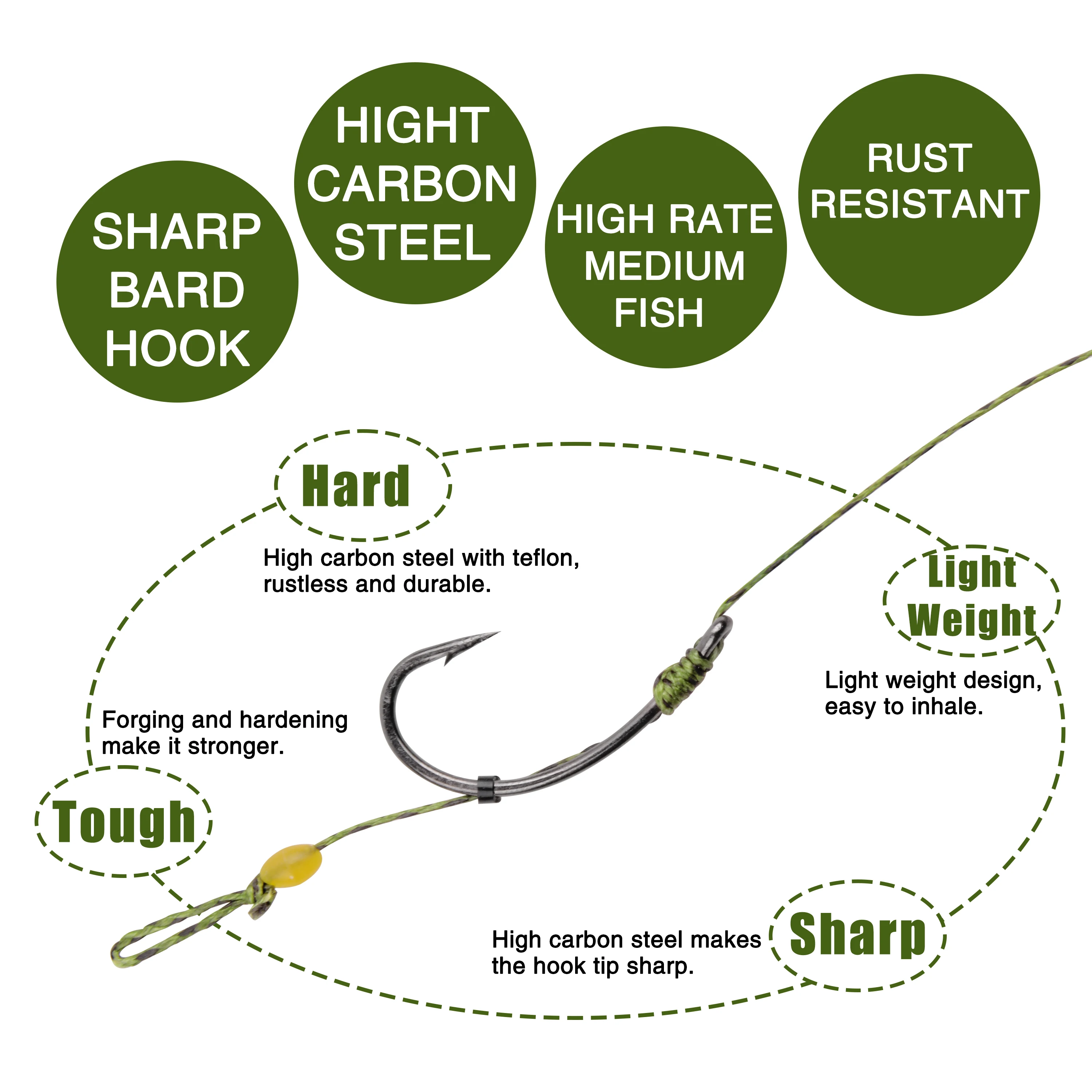 Anzuelos afilados de acero con alto contenido de carbono, aparejo atado con Boilies para cebo, mejor para conectar.