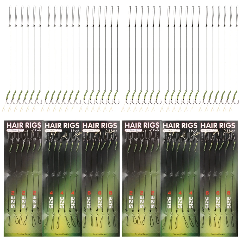 1. Las plataformas de pelo de pesca de carpa incluyen gancho de vástago curvo de acero inoxidable, Mangas de gancho de carpa antienredos y línea recubierta verde