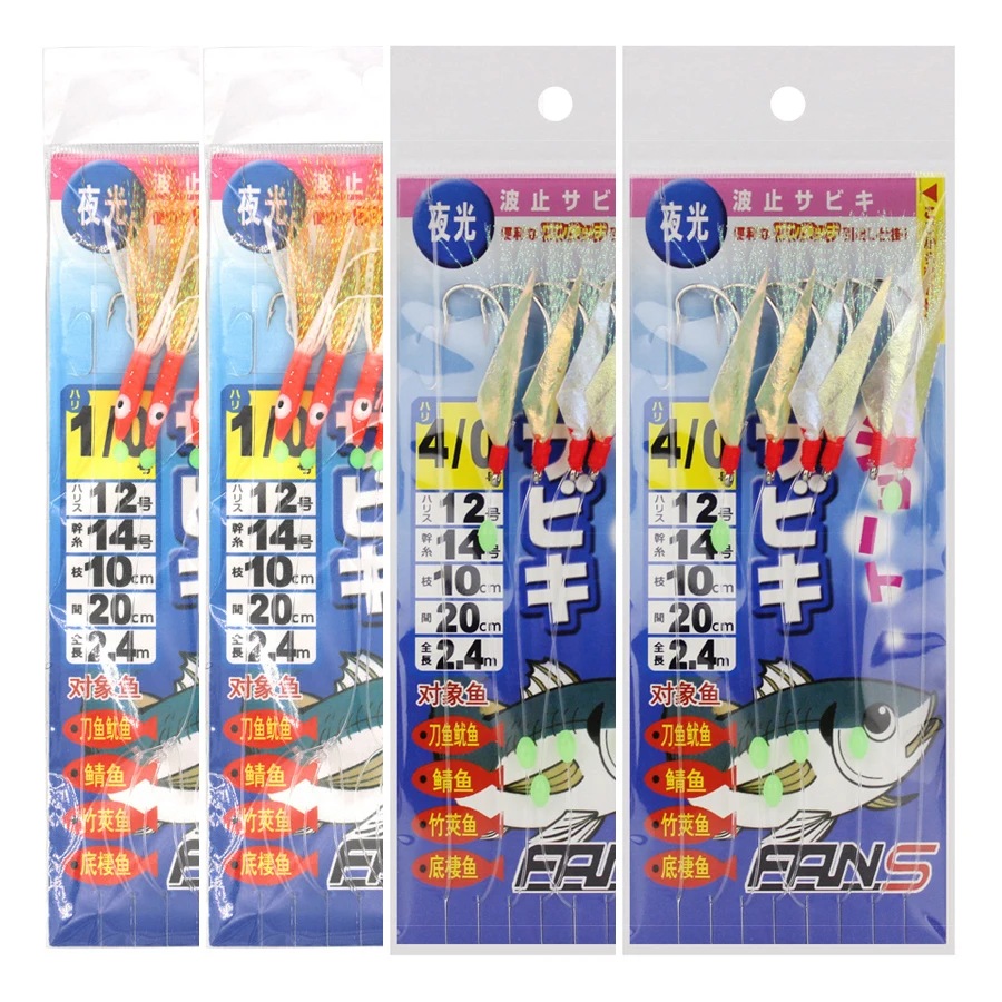 Aparejos de pesca, 4 paquetes, barco de mar, muelle de playa, señuelos, aparejos de pesca, anzuelo de cuerda de tamaño mixto, aparejo de plumas con rodamiento de bolas giratorio