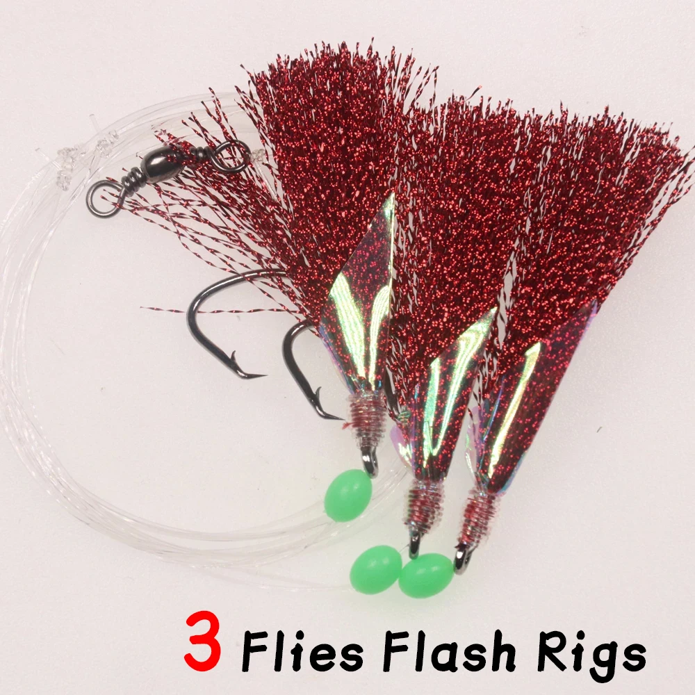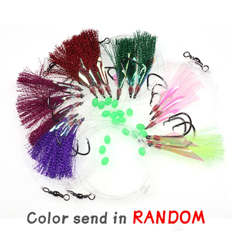 10PACKS 3 hooks 3/0-8/0 Flasher Sabiki Rigs Sea Bass Snappers Saltwater Fish Fishing Rig Circle Hook Sets with Luminous Beads