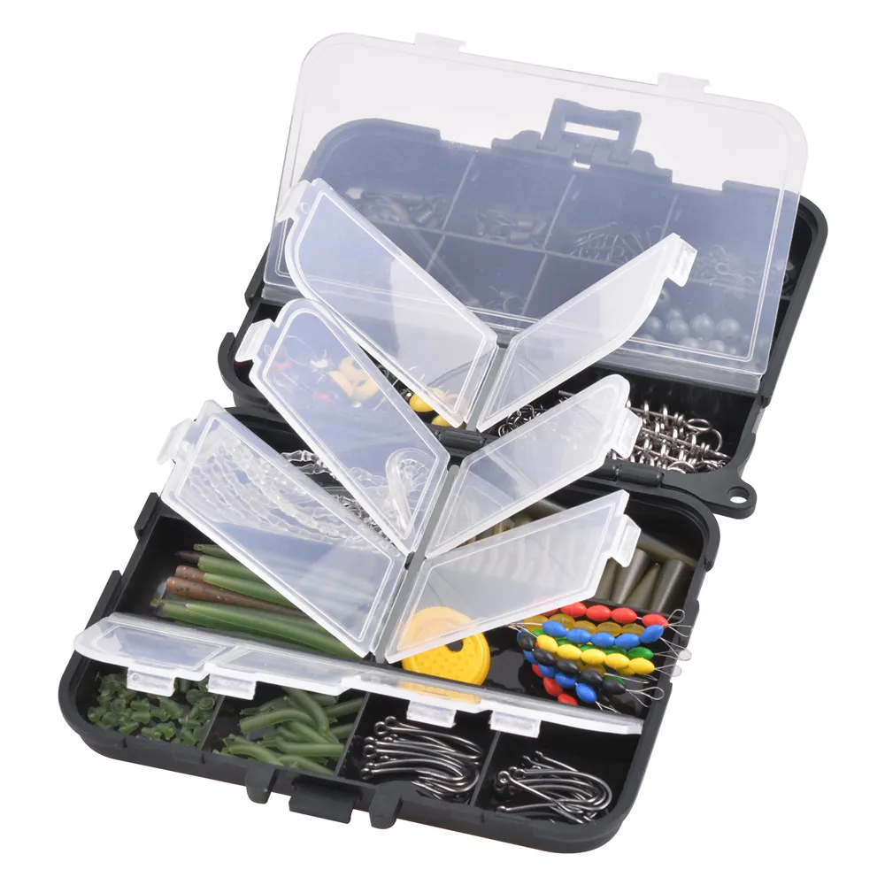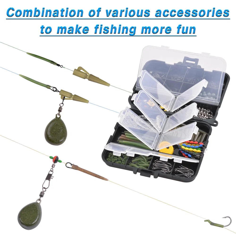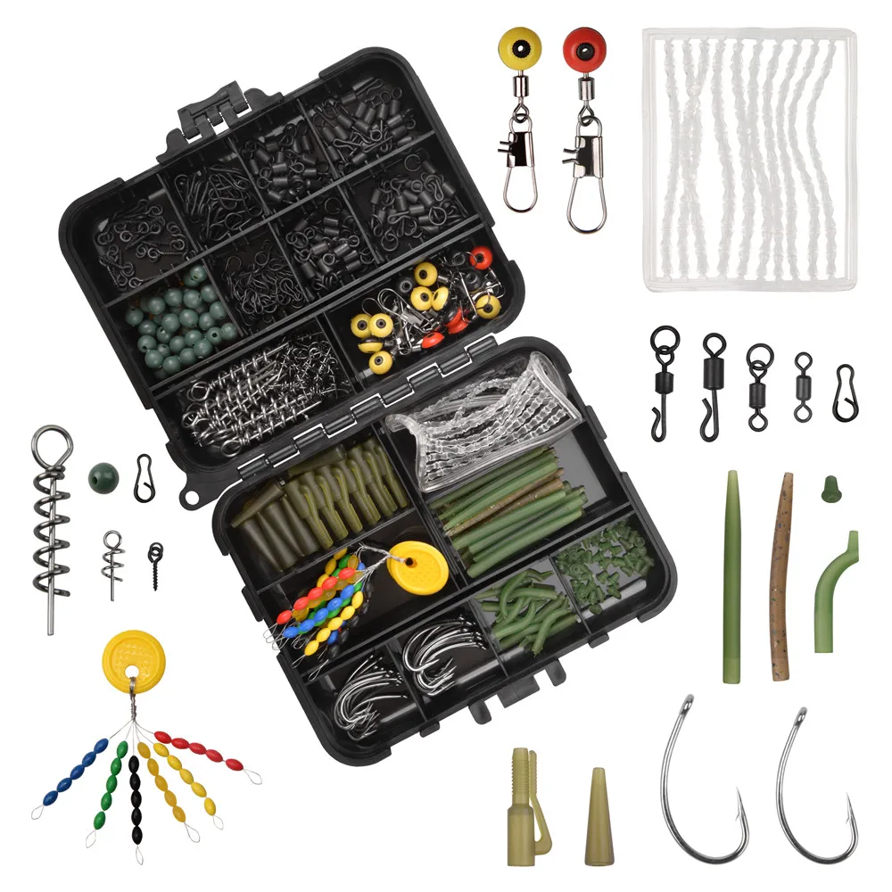 348 unids/caja de cajas de aparejos de pesca de carpa con eslabones giratorios de cambio rápido mate, anzuelo, Boilie, cebo, topes para carpa, accesorios para plataformas líderes