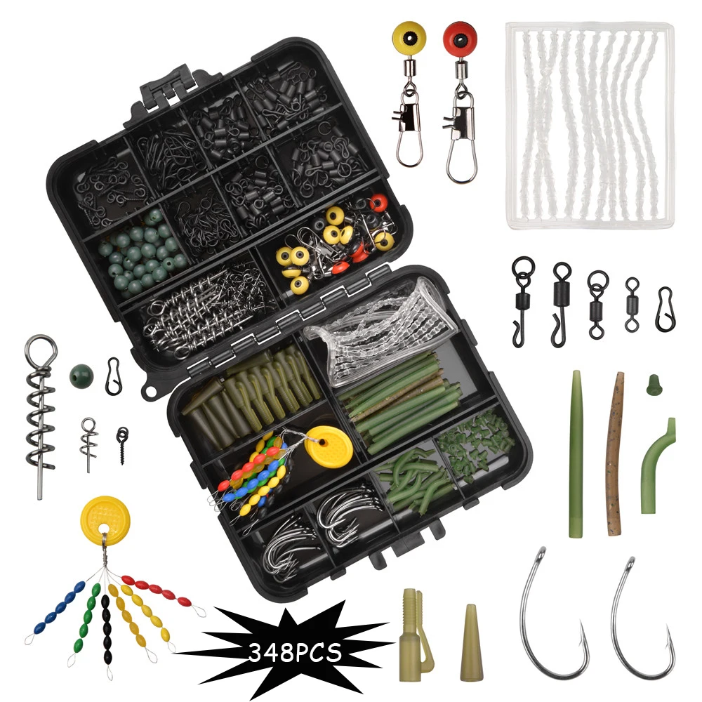 348 unids/caja de cajas de aparejos de pesca de carpa con eslabones giratorios de cambio rápido mate, anzuelo, Boilie, cebo, topes para carpa, accesorios para plataformas líderes