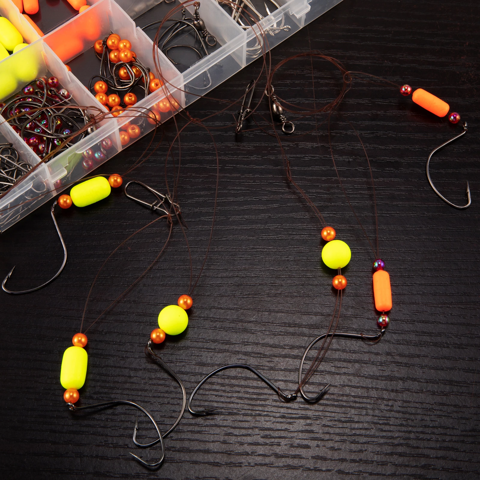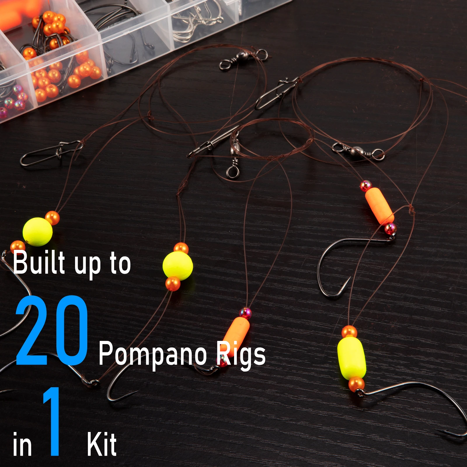 Gran cantidad de 200 piezas:Nuestro Kit de accesorios le permite componer por sí mismo un par de aparejos de pompano de 2 anzuelos con su propio sedal, le permite personalizar su aparejo de acuerdo con sus preferencias (longitud, por ejemplo).