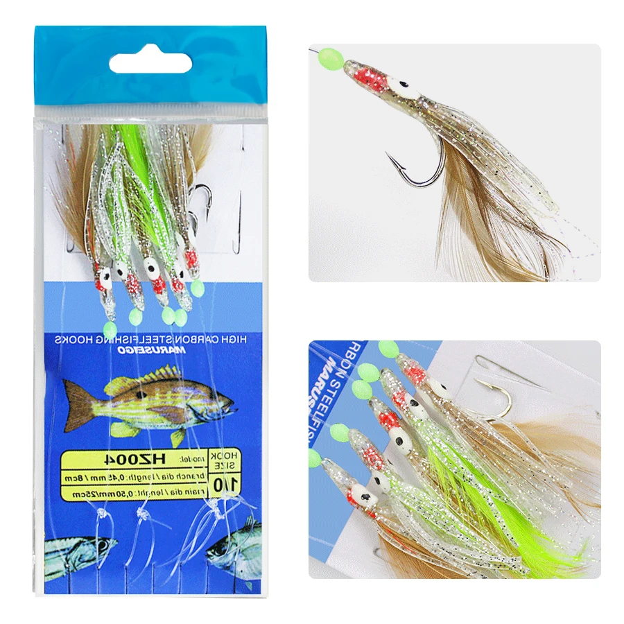 10 paquetes de aparejos de pesca 5 ganchos/juego de piel de arco iris gancho de hilo de seda señuelo de pesca agua salada cebo de agua dulce aparejo 1/0