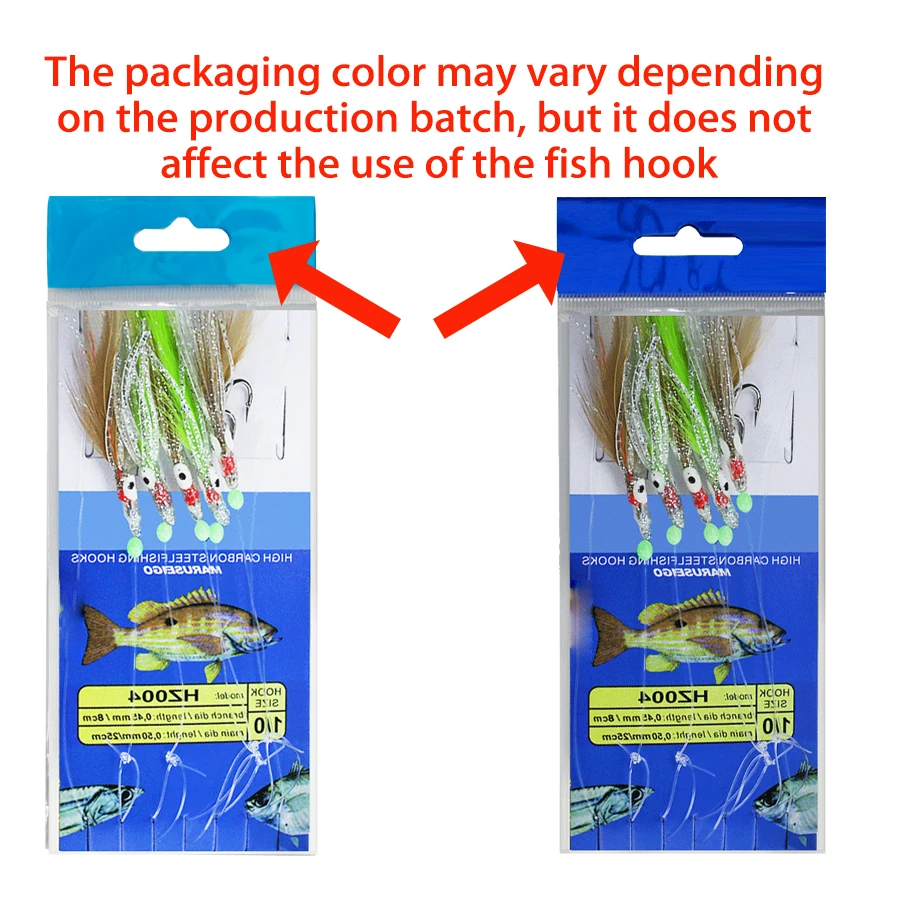 Cantidad: 5 piezas de aparejos por paquete, 10 paquetes significa que los aparejos sabiki tienen 50 piezas.