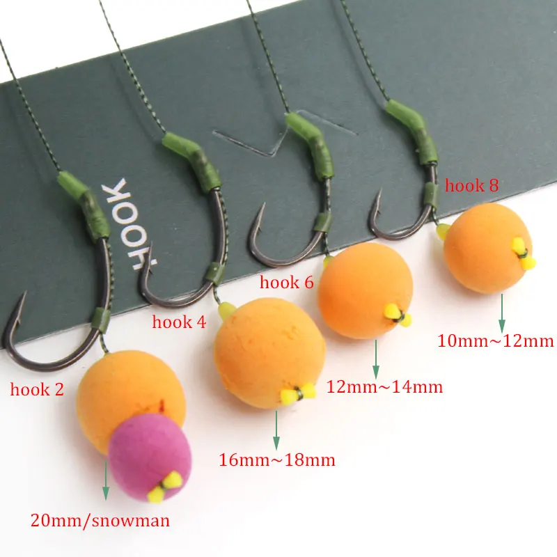 Herrajes para el cabello para pesca de carpa, gancho listo para usar, Boiles atados con gancho de púas, tamaño 2#4#6#8 Accesorios para equipos de aparejos de pesca Pesca