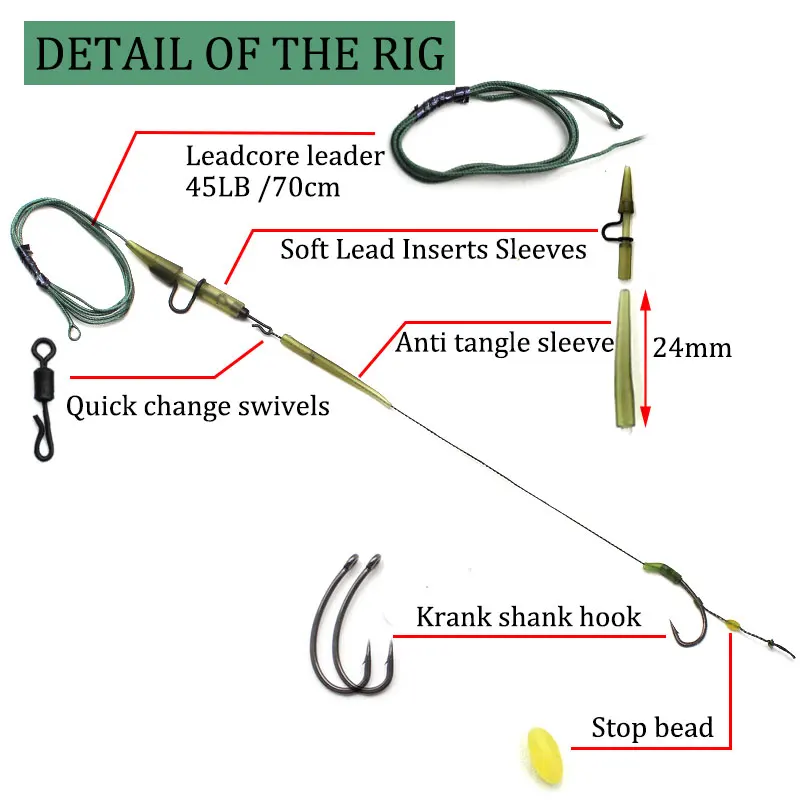 Los aparejos de carpa están hechos con clip resistente/mangas antienredos/gancho de carpa/giratorio de cambio rápido/cuenta de parada y anzuelo de pesca de carpa, que es lo esencial para la pesca de carpas, es muy adecuado para el pescador.