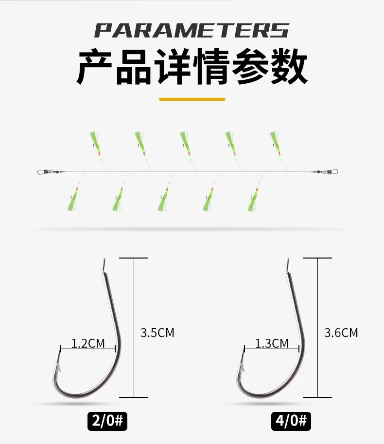 Aparejos de mar Sabiki, juego grande, atún de curricán de agua salada para lubina, pez negro, señuelo de pesca de bacalao, 1/0