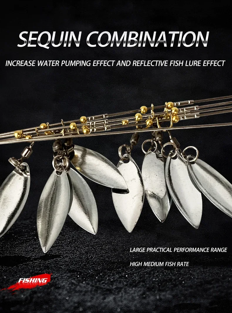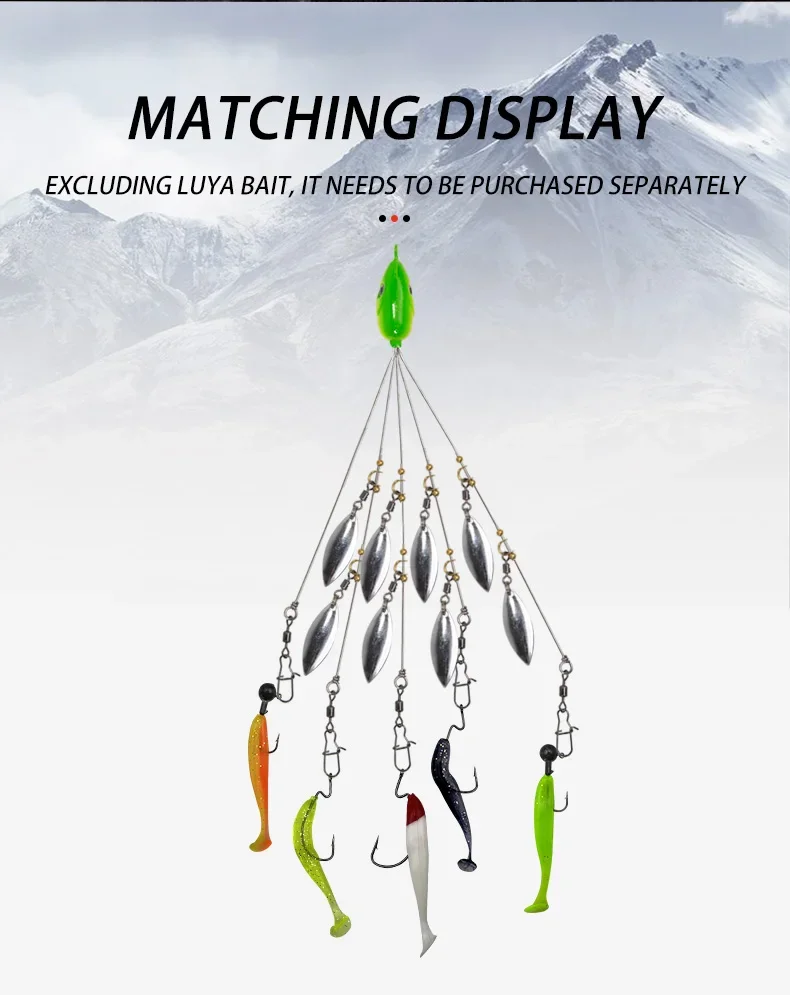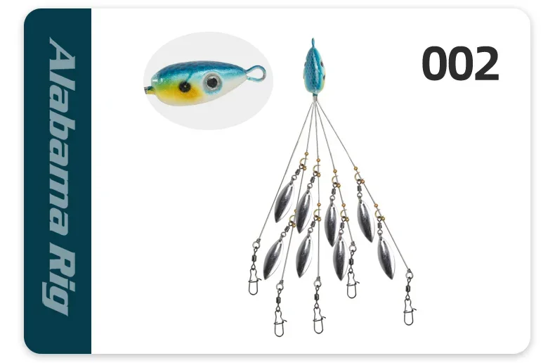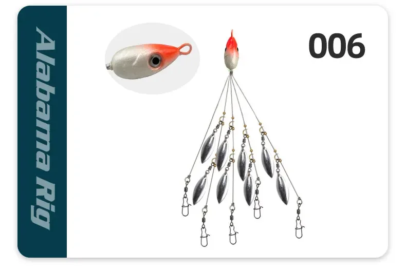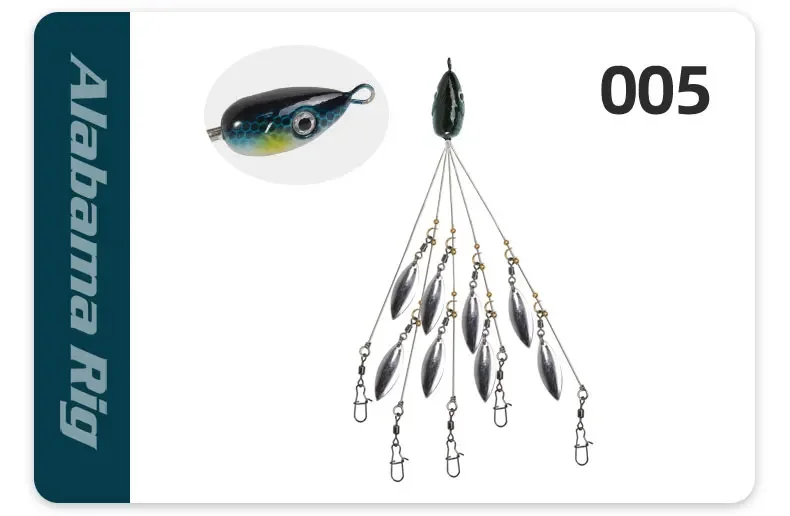 Equipos de paraguas Alabama de 5 brazos con 8 cuchillas, hoja de sauce ultraligera, aparejo multi-señuelo para pesca de lubina, cebo de natación, agua salada