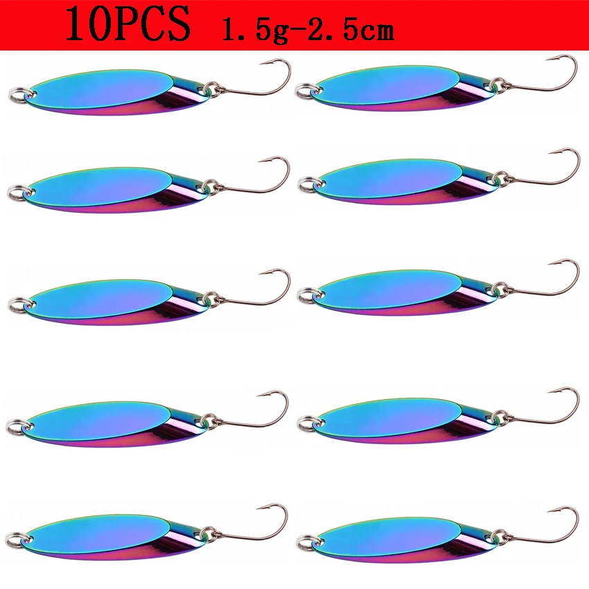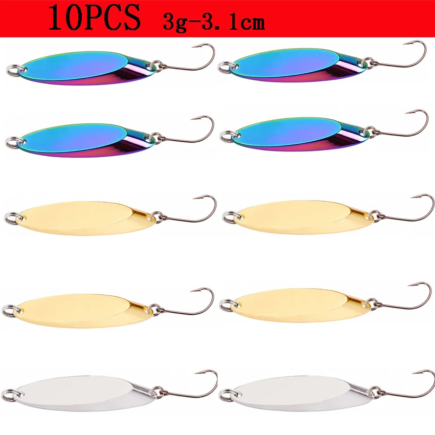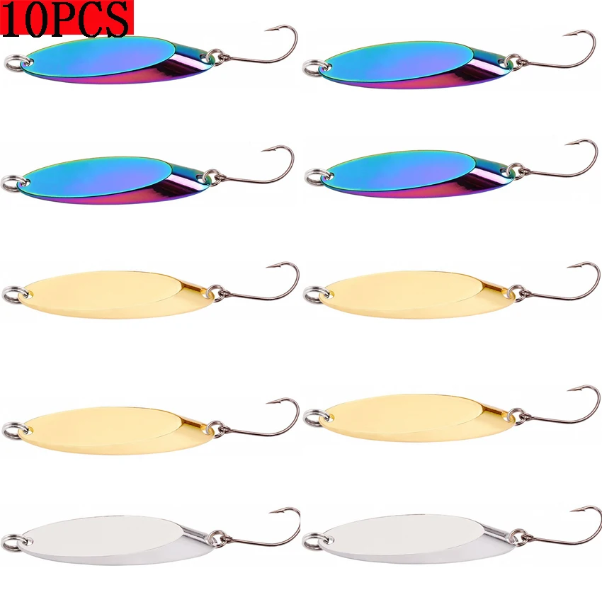 Aparejos de pesca de 10 piezas, señuelos giratorios de Metal, anzuelo afilado, señuelo de lentejuelas duras, cebo giratorio de agua dulce y salada