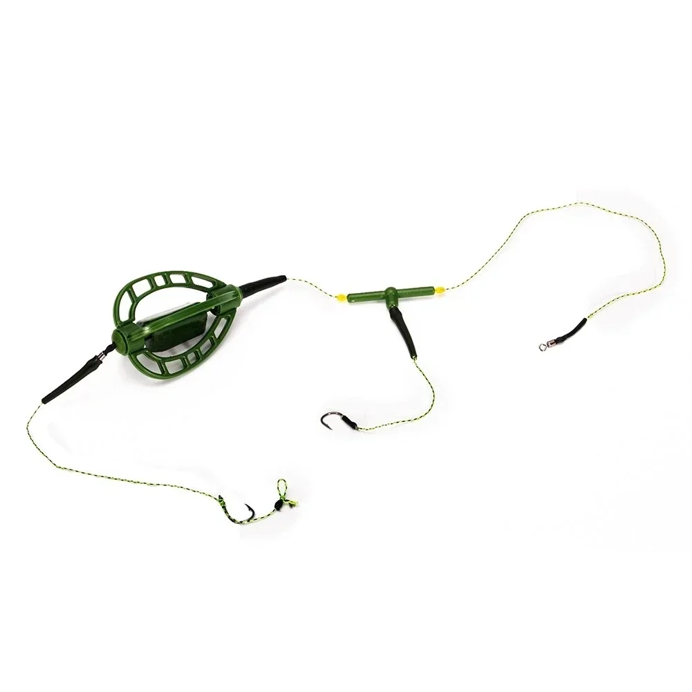 Aparejos de pesca de 35g-48g, jaula alimentadora, señuelo, alimentadores de pesca, dispositivo de anidación de carpa de línea larga, juego de pesca, alimentador de cebo colgante verde