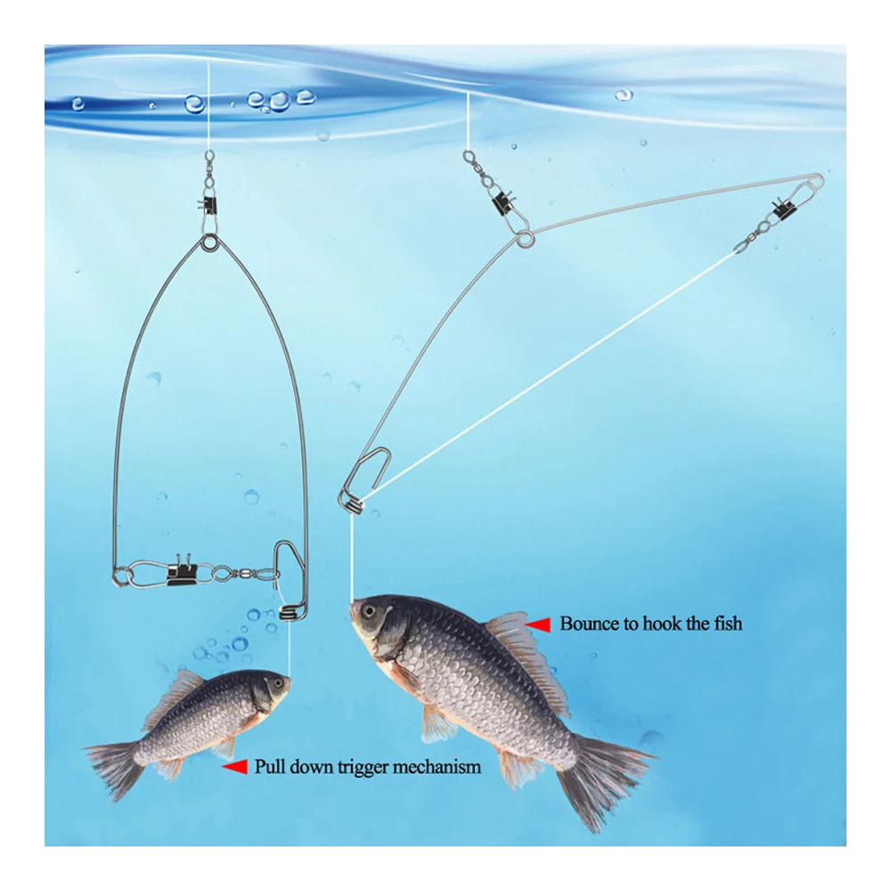 2. Baje el mecanismo del gatillo y rebote en el pez mediano. Evita el retraso en levantar la caña y el pez se desenganchará.
