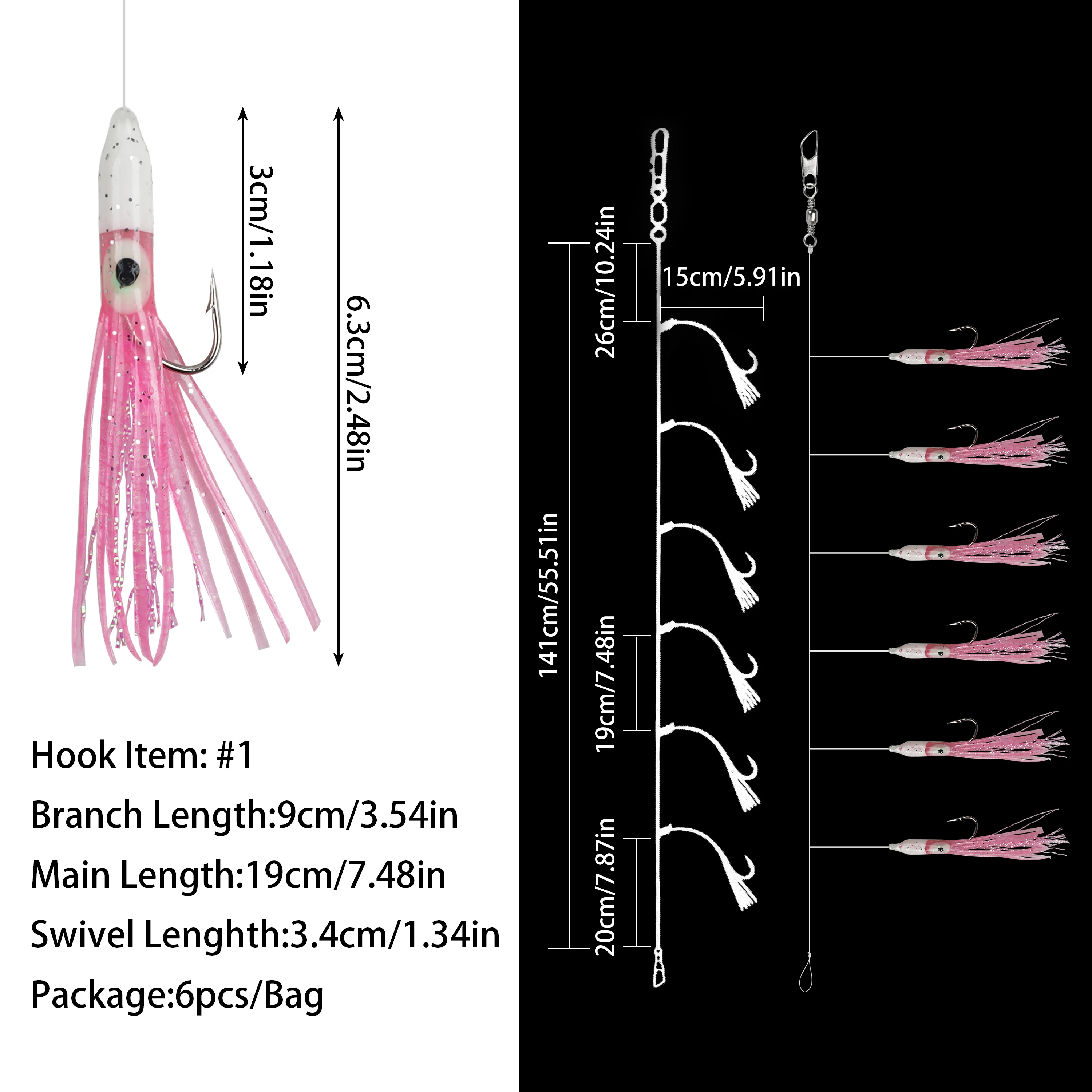 Aparejos de pesca de agua salada, señuelos de cebo, aparejos de pesca de Surf, señuelo de pulpo, aparejos de pesca de agua salada, 6 paquetes