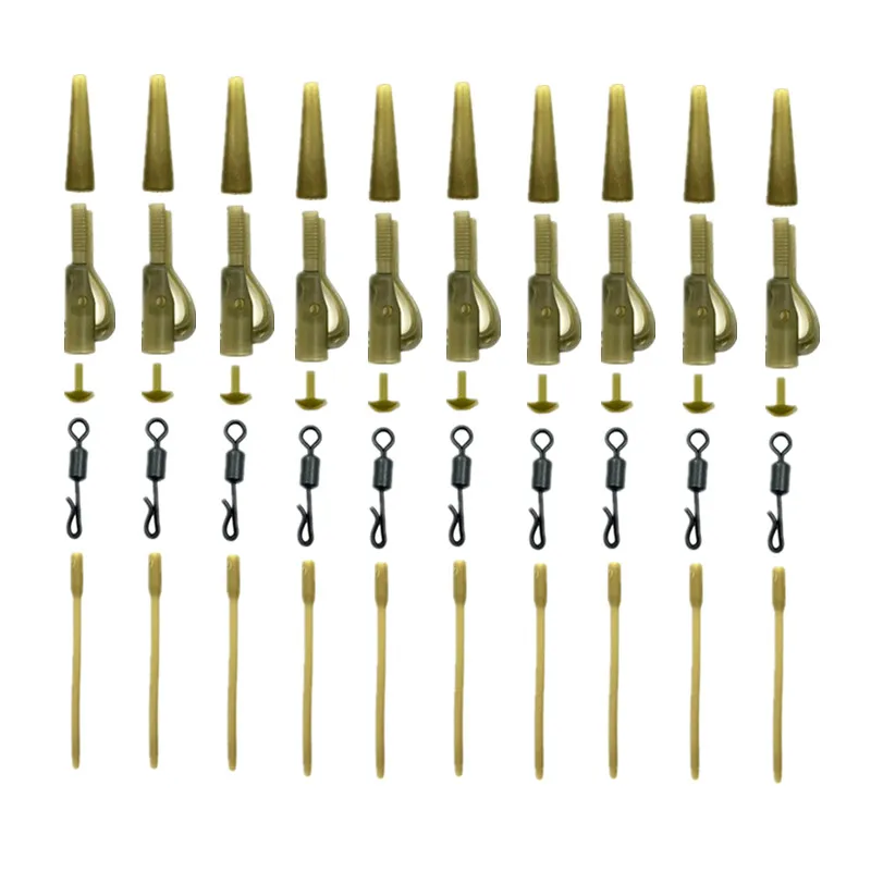 Aparejos de pesca para carpa de 40, Clip de plomo, cola giratoria de cambio rápido, mangas antienredos de goma para accesorios de pesca de carpa