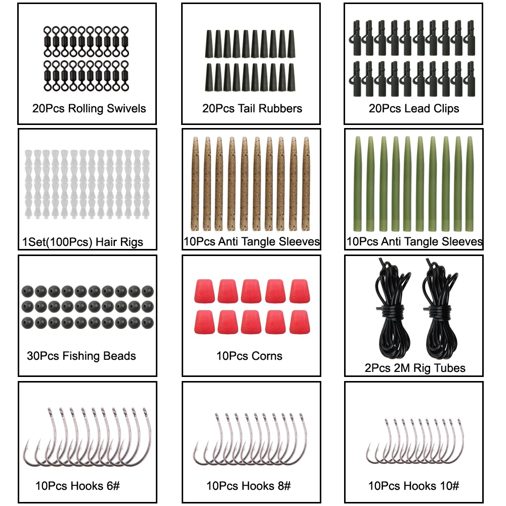 Los aparejos de pesca de carpa de 1.252 piezas son ideales para cualquier pescador, desde principiante hasta experto.