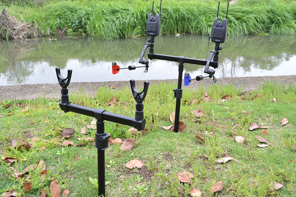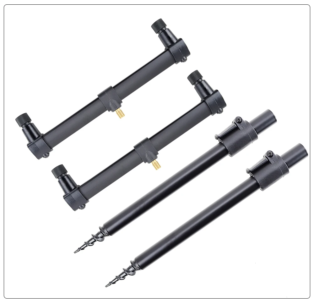 Este juego de cañas de pescar carpas fue hecho con una aleación de aluminio triangular, que incluye 1 bolsa de 2 palos de Banco de piezas y 2 barras de zumbido de La piezas, son más fuertes y de un color acabado muy agradable, perfecto para la pesca de carpa.
