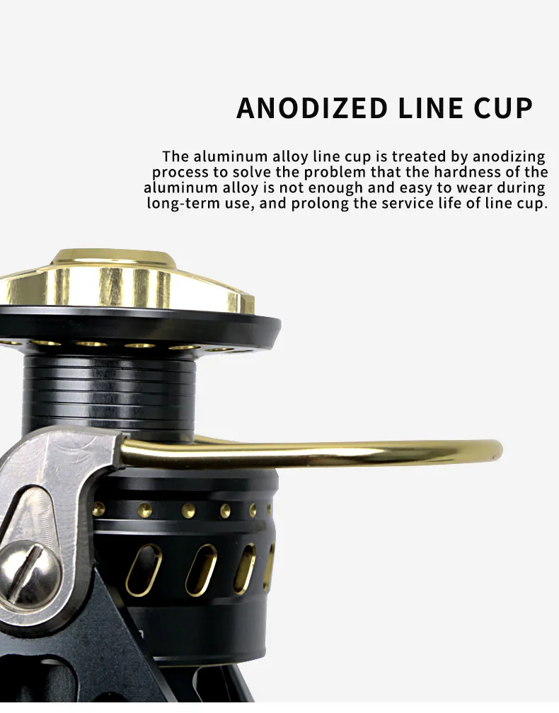 La copa de la línea de aleación de aluminio se trata mediante un proceso de anodizado para resolver el problema de que la dureza de la aleación de aluminio no es suficiente y es fácil de usar durante el uso prolongado, y prolongar la vida útil de la copa de la línea.