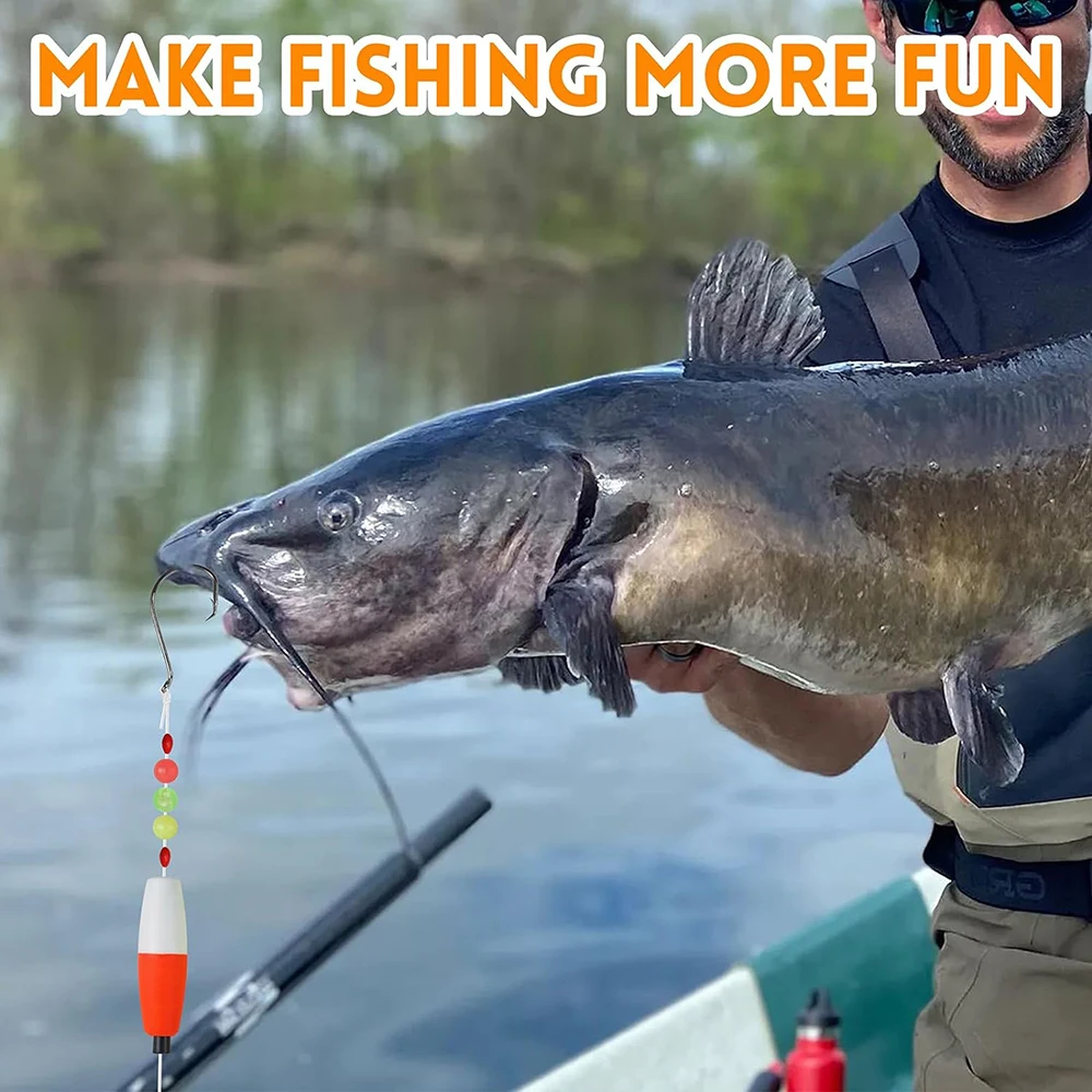 2. La pintura fluorescente de alta visibilidad tiene flotadores de colores brillantes hechos de material EVA. Ligero y duradero. La flotabilidad proporcionada por el flotador de bagre mantiene cualquier cebo de bagre fuera del Fondo, fuera de enganches y en la zona de ataque.