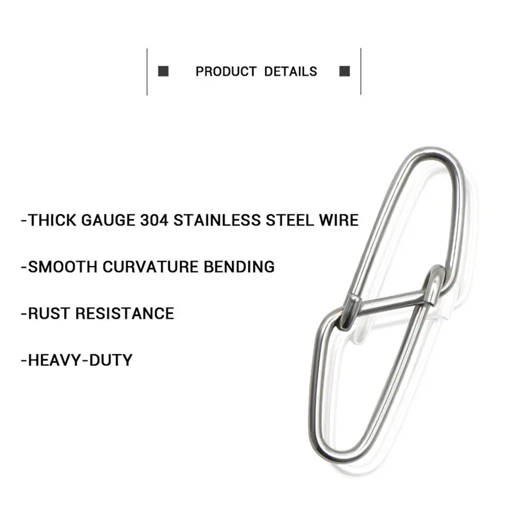 Especificaciones: Material: acero inoxidable Tamaño: 0-4 # Color: como se muestra Número: 100 piezas Descripción: -Resistente a la abrasión, anticorrosión -Giratorio para suavizar, súper atención. -Es aplicable a muchos tipos diferentes de pesca, es su buen ayudante. Nota: 1. Debido a la diferencia del monitor y efecto de la luz, el color real del artículo puede ser ligeramente diferente al color mostrado en las imágenes. 2. Permite una desviación de medición de 1-5mm debido a la medición manual. El paquete incluye: Conector a presión de bloqueo de 100 piezas