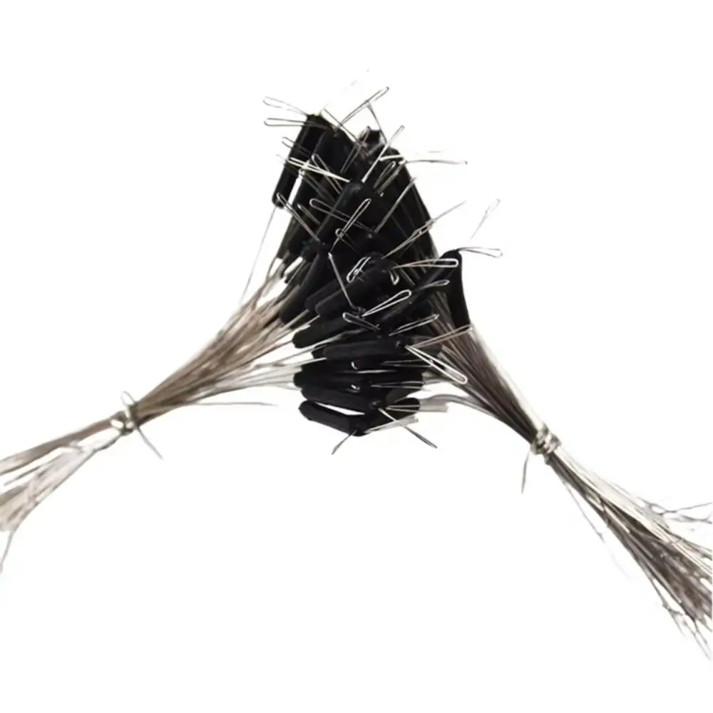 Item Type: Fishing Line Bifurcation Device Material: Plastic Type: Fishing Tackle Application: Sub Line Structure: One To Two Color: Black Package Included: 200pcs Fishing Line Bifurcation Devices Features: Brand new and high quality. Used to hang two fishing hooks on one fishing line, convenient and useful. Easy to operate, high quality plastic sub line bifurcation device can be stable and duable.