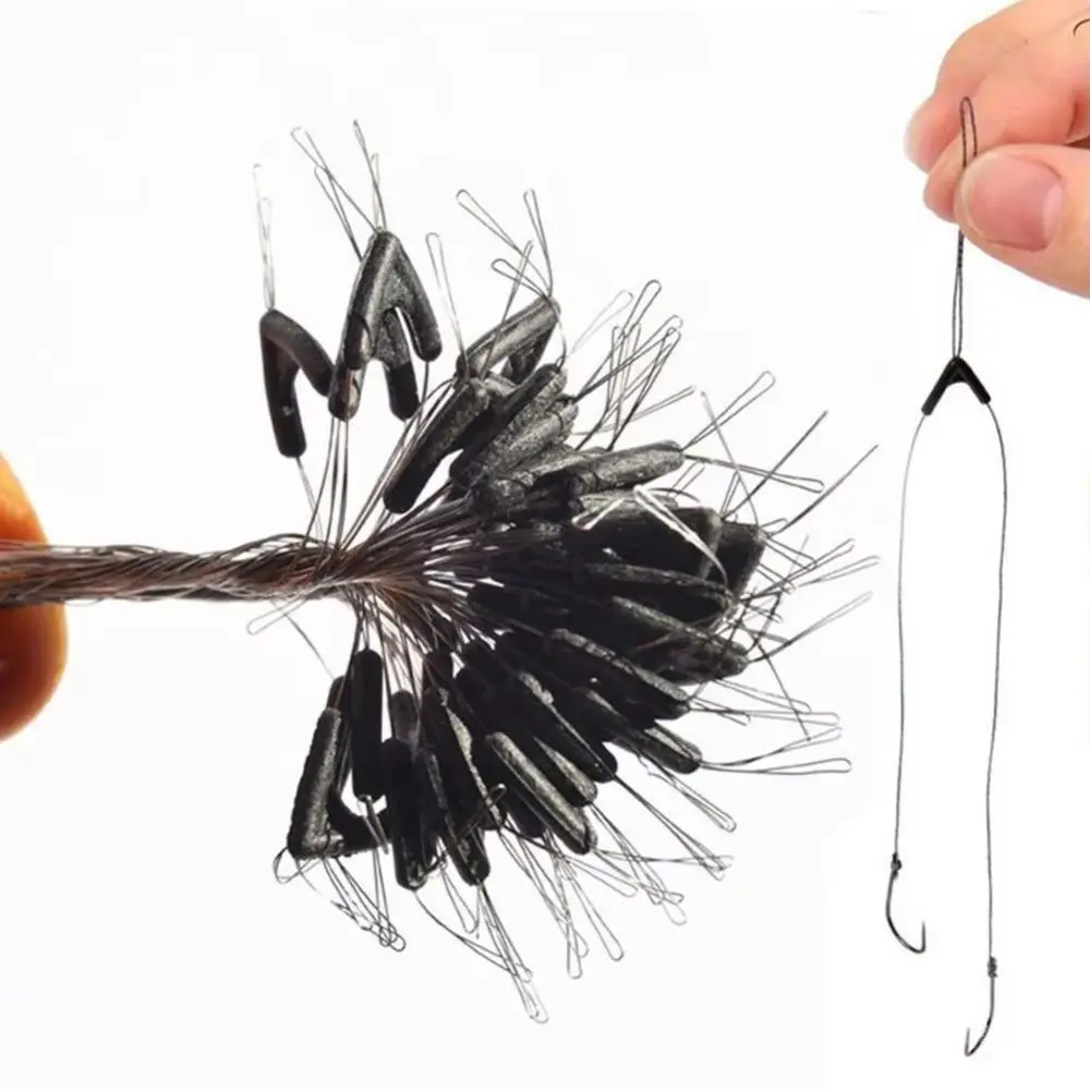 Item Type: Fishing Line Bifurcation Device Material: Plastic Type: Fishing Tackle Application: Sub Line Structure: One To Two Color: Black Package Included: 200pcs Fishing Line Bifurcation Devices Features: Brand new and high quality. Used to hang two fishing hooks on one fishing line, convenient and useful. Easy to operate, high quality plastic sub line bifurcation device can be stable and duable.