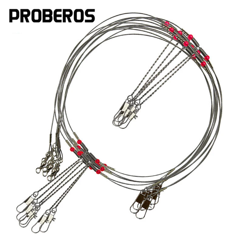 Aparejos de pesca de doble brazo, líder de acero inoxidable para agua salada con giratorios, equipo de equipo de alambre de pescado de alta resistencia, 10 Uds.