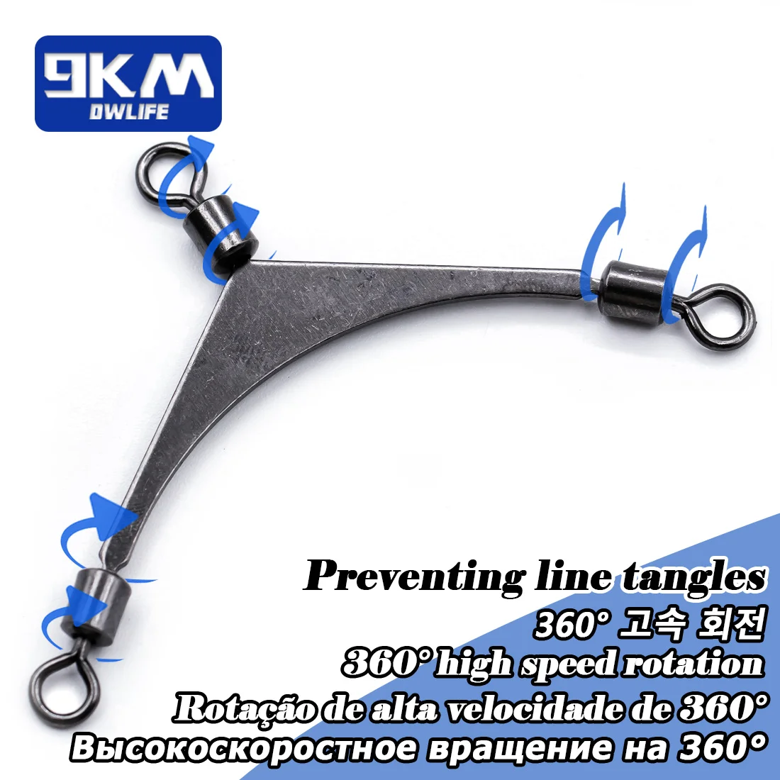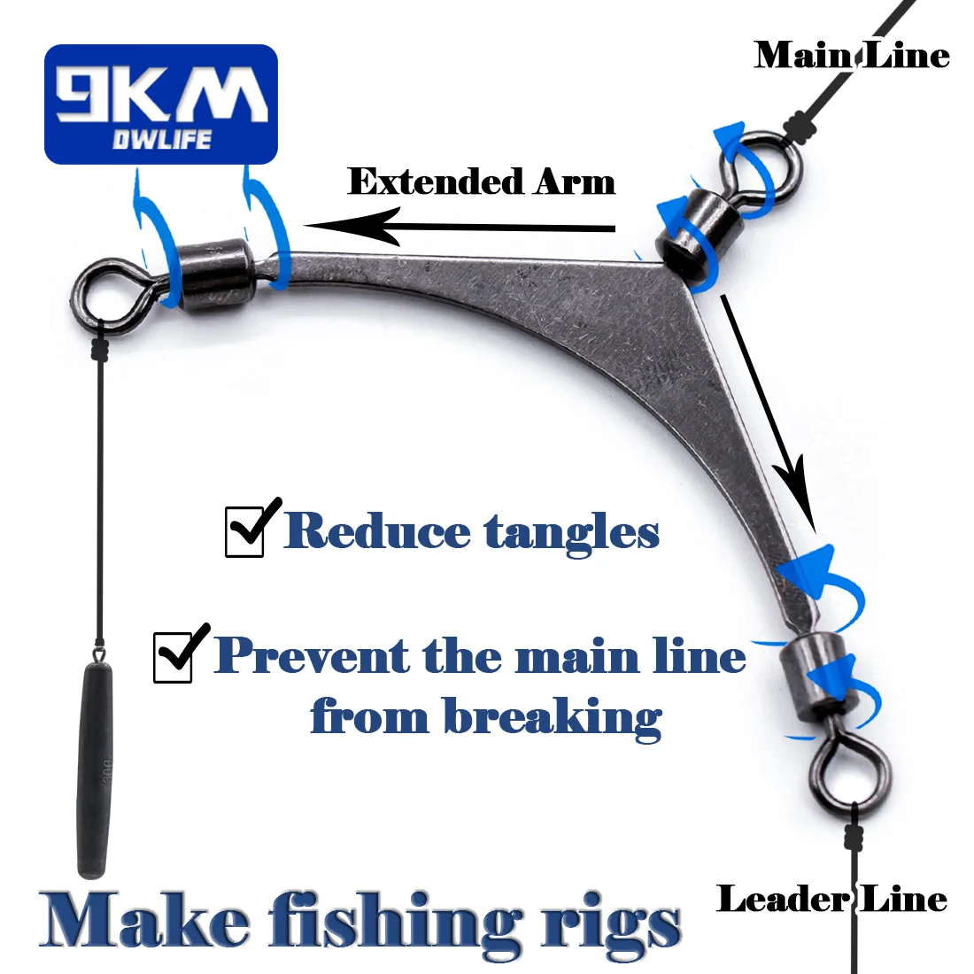 El diseño triangular único de estos giratorios evita que su hilo de pescar se enrede o se tuerza, lo que garantiza una experiencia de pesca más exitosa y agradable.