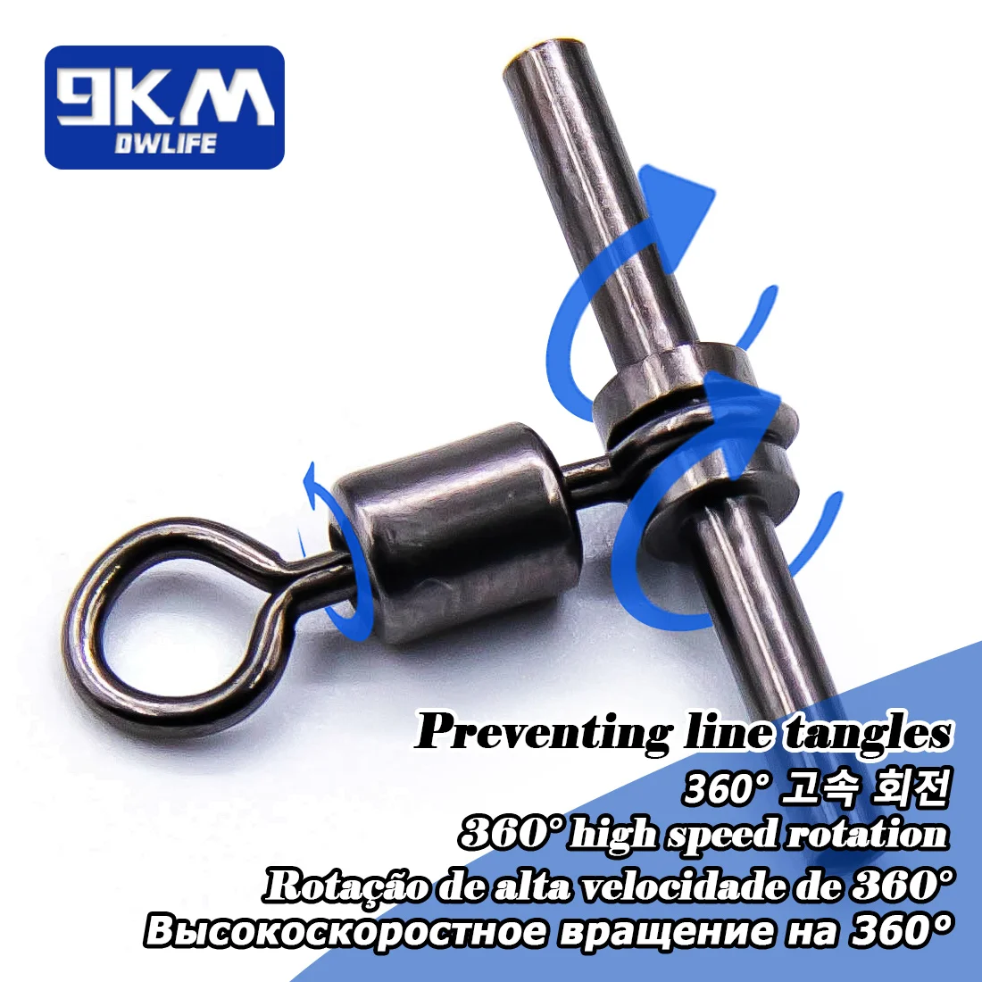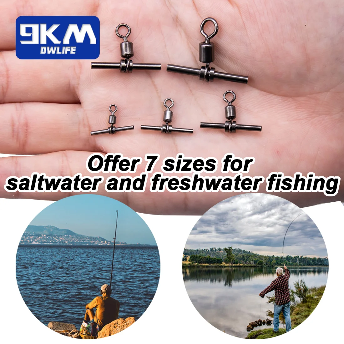 T-Shape Design: The special T-shape structure makes the fishing swivels rotate flexibly in all directions even under strong force. Unrestricted high-speed rotation of the Rolling swivel prevents the bait rig from twisting allow the bait to present more natural actions in water and reduces the dragging force from fish to protect fishing tackles.Free and independent rotation make the fishing lures more attractive.