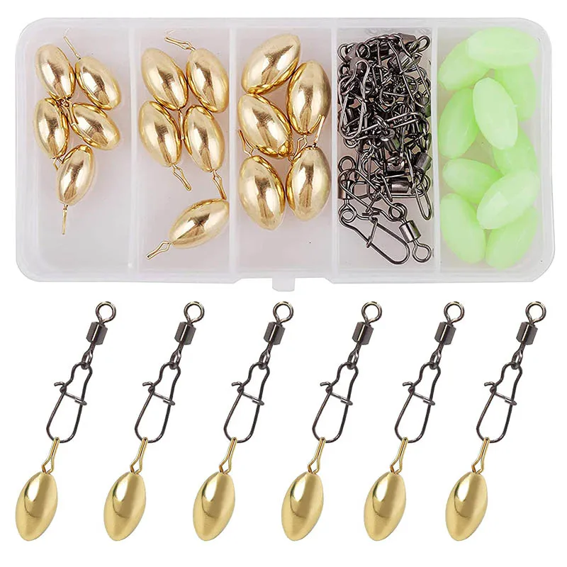Cantidad: 45 Uds. ---- Plomada de latón de 15 piezas ---- 10 Uds. De cuentas de pesca ---- 20 piezas de eslabones giratorios de pesca rodantes Paquete: caja de plástico Tamaño del latón: 1/8OZ, 3/16OZ, 1/4OZ Modelo: equipo de tiro directo Material: plomada de latón, eslabón giratorio de latón y cierre de acero inoxidable, cuentas de pesca de plástico. Características: Material de latón puro, duradero, sin contaminación Tamaño de peso de disparo de caída diferente, más opciones Mezcla de diferentes productos, más cómodo de usar Nota: puede haber algunos errores de medición, no se preocupe. Gracias