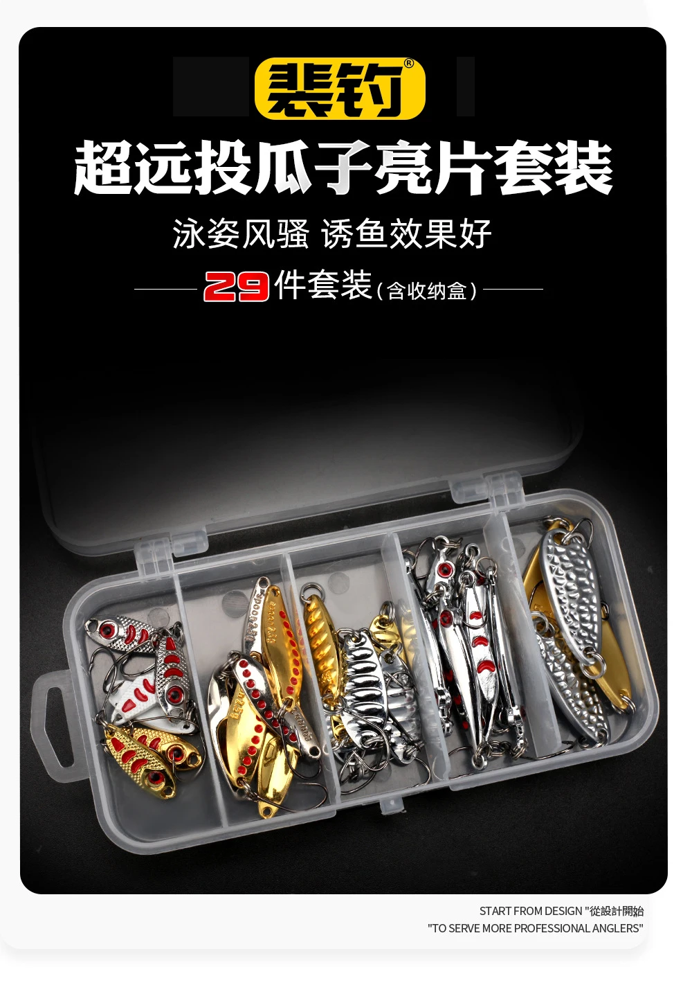 Aparejos de pesca PD, Set de 29 piezas, cuchara de cebo, Boca de caballo, lentejuelas, cebo vib de Metal, cebo falso de fundición larga