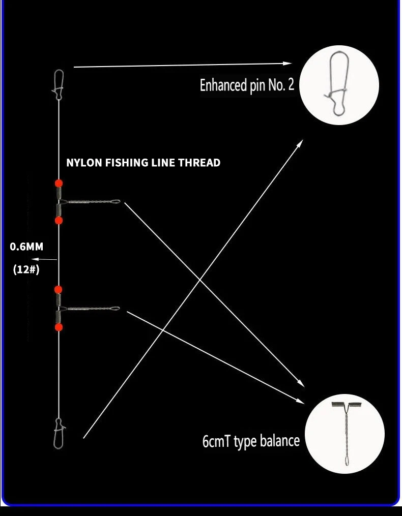 Aparejos de pesca PD, Tenpin de pesca en el mar, en forma de T, conjunto de línea trenzada pequeña, sublínea de agua dulce de Roadrunner, soporte de pesca en forma de Y