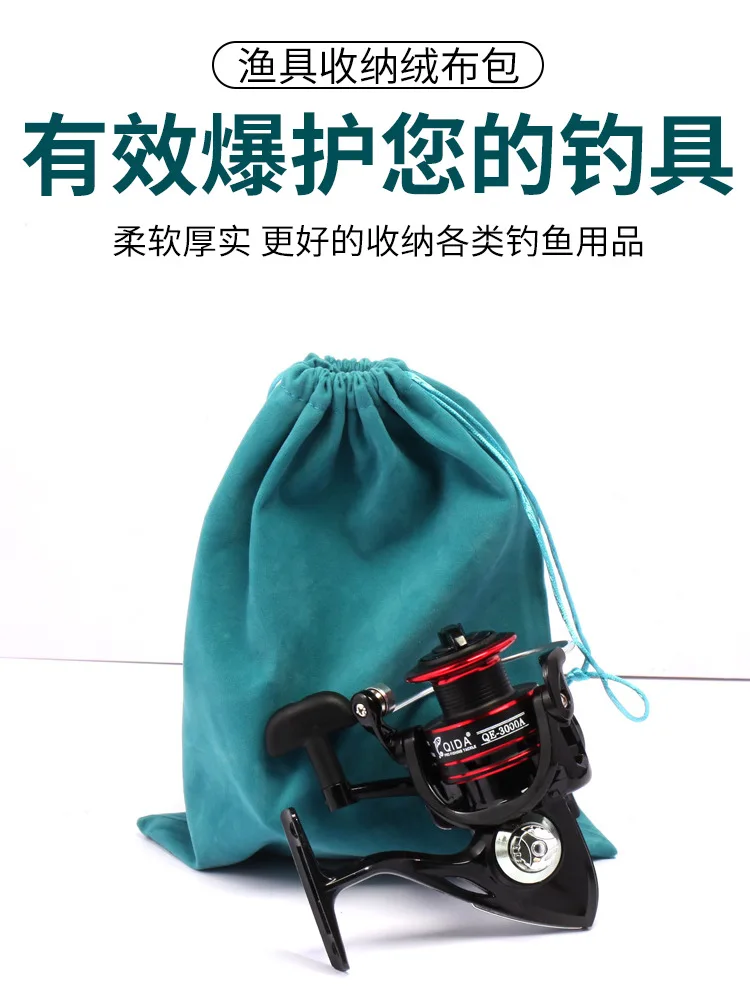 Aparejos de pesca plegables, accesorios de equipo de pesca, bolsa de almacenamiento de ruedas, bolsa de carretes de pesca, bolsa protectora de carrete con cordón portátil