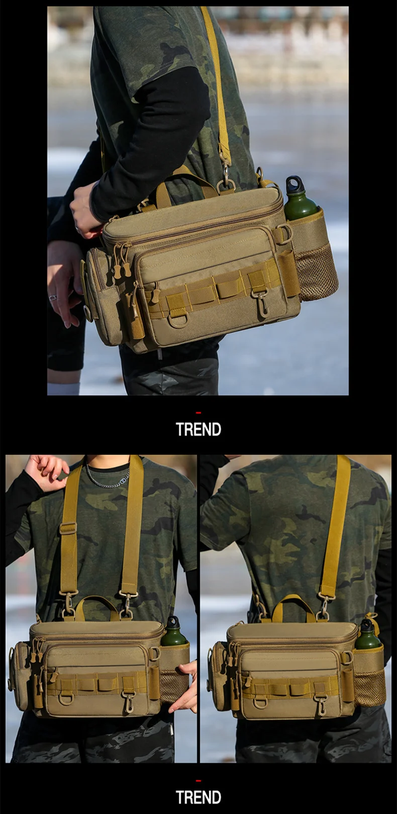 2.Molle system design for log-in can be placed outdoor fishing tackle
