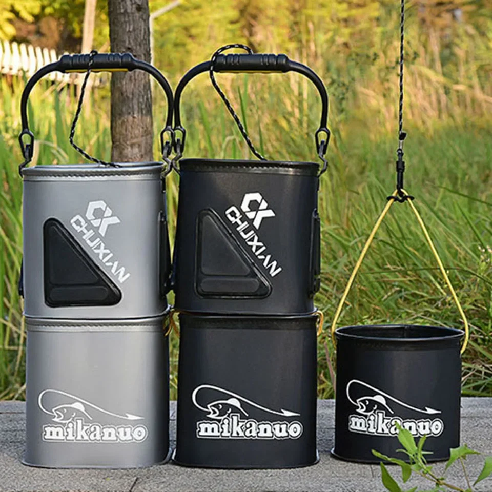 Aparejos de pesca ultraligeros y duraderos para exteriores, cubo de pesca grueso EVA plegable con cuerda para acampar, senderismo, contenedor de agua, bolsa de pesca