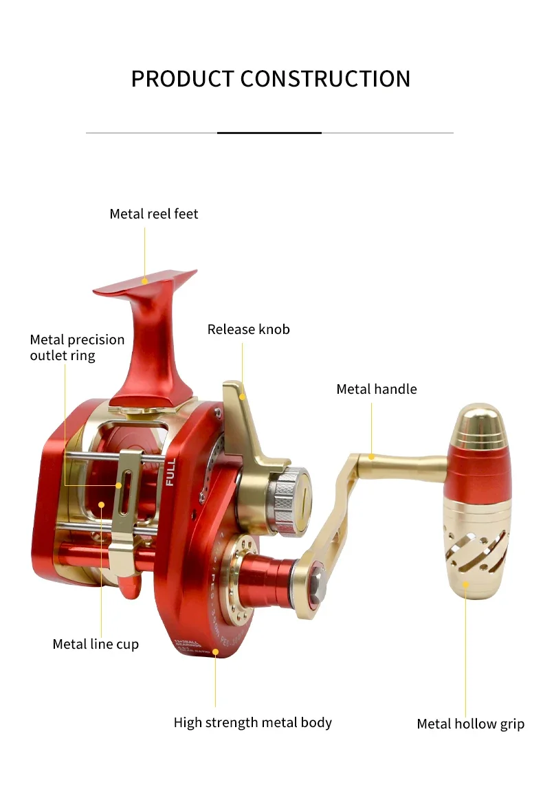 Topline Tackle de Metal completo debajo del carrete de jigging lento agua salada arrastrar máximo 35kg tambor de mar profundo carrete de pesca de curricán Anticorrosión